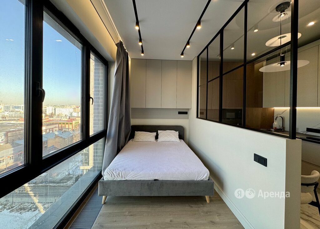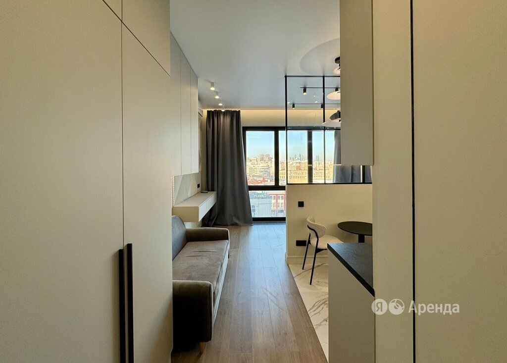 Сдаётся студия площадью 27 кв.м. с дизайнерским ремонтом на 12 этаже в 18-этажном доме на срок от 11 месяцев. Из техники есть:
