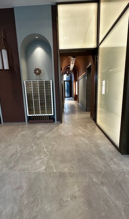 В вестибюле жилого комплекса, оборудованы стойки ресепшен, комфортные зоны ожидания, гостевые санузлы, мойки для лап животных, колясочные. В корпусах по 3-4 лифта с прямым доступом в паркинг.