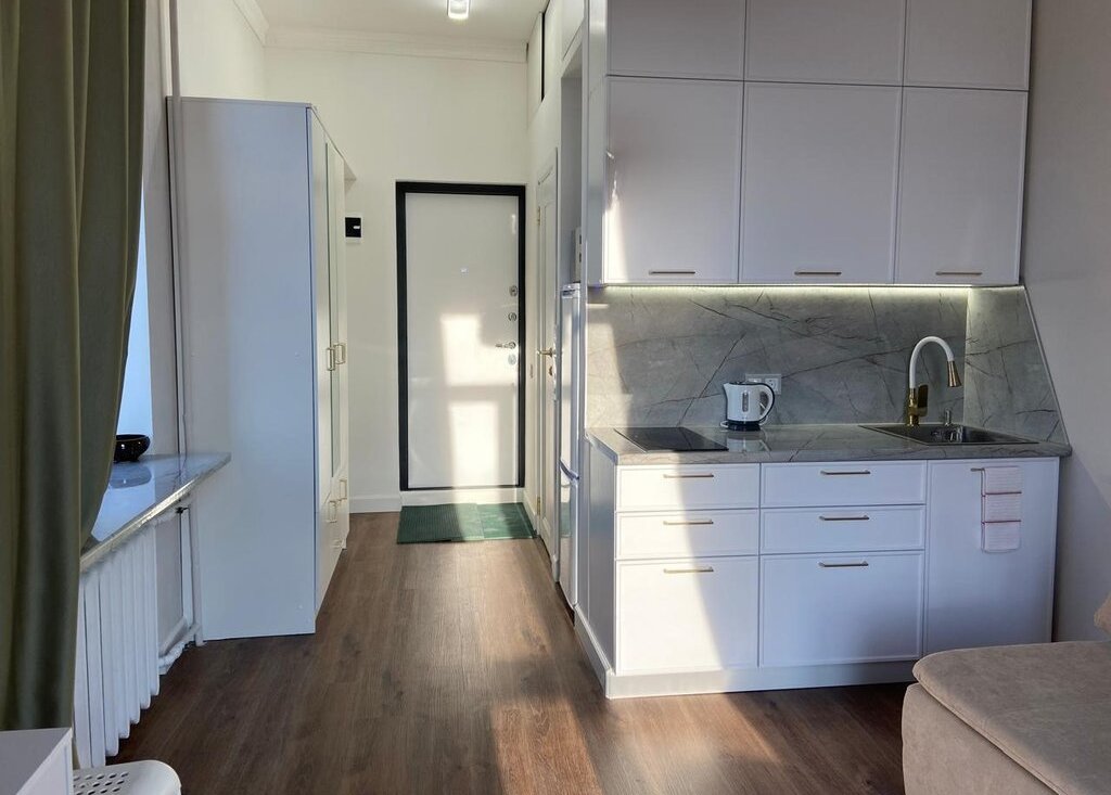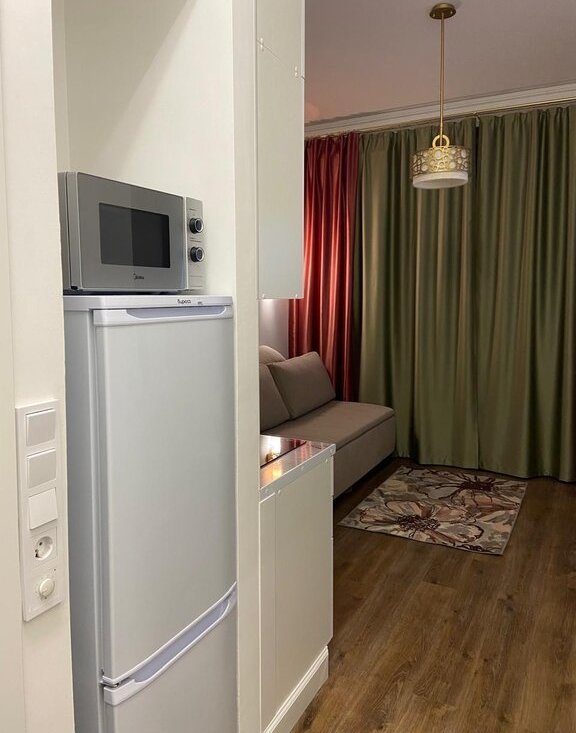 Сдаётся новый апартамент в историческом здании "сталинской" архитектуры со стильным качественным ремонтом, ЛИФТОМ и видовым БАДКОНОМ (!). Это единственная студия в доме с большим Г-образным балконом, который смотрит на вход в метро Окружная, рядом МЦК, Д1 с дорогой на Шереметьево (аэроэкспресс гарантированно довезет за 50 минут). Рядом с домом имеется множество кафе, сетевые магазины, все маркет-плейсы, Ботанический сад в пешей удаленности. В студии произведена шумоизоляция и кондиционирование, вентиляция, тёплый пол в душевой комнате, проводной интернет с роутером. Сантехника французского бренда Jacob Delafon. Имеется вся необходимая для длительного проживания мебель и техника: кухонный гарнитур, диван Аскона с ортопедическим спальным местом 160Х200, рабочий стол, плательный шкаф, телевизор с Алисой, стиральная машина, холодильник, варочная плита, микроволновка, чайник. Вся мебель и техника имеют идеальное состояние. Рассмотрим 1-2 чистоплотных, платёжеспособных людей от нескольких месяцев. Можно курить на балконе.