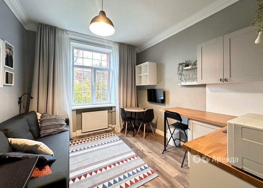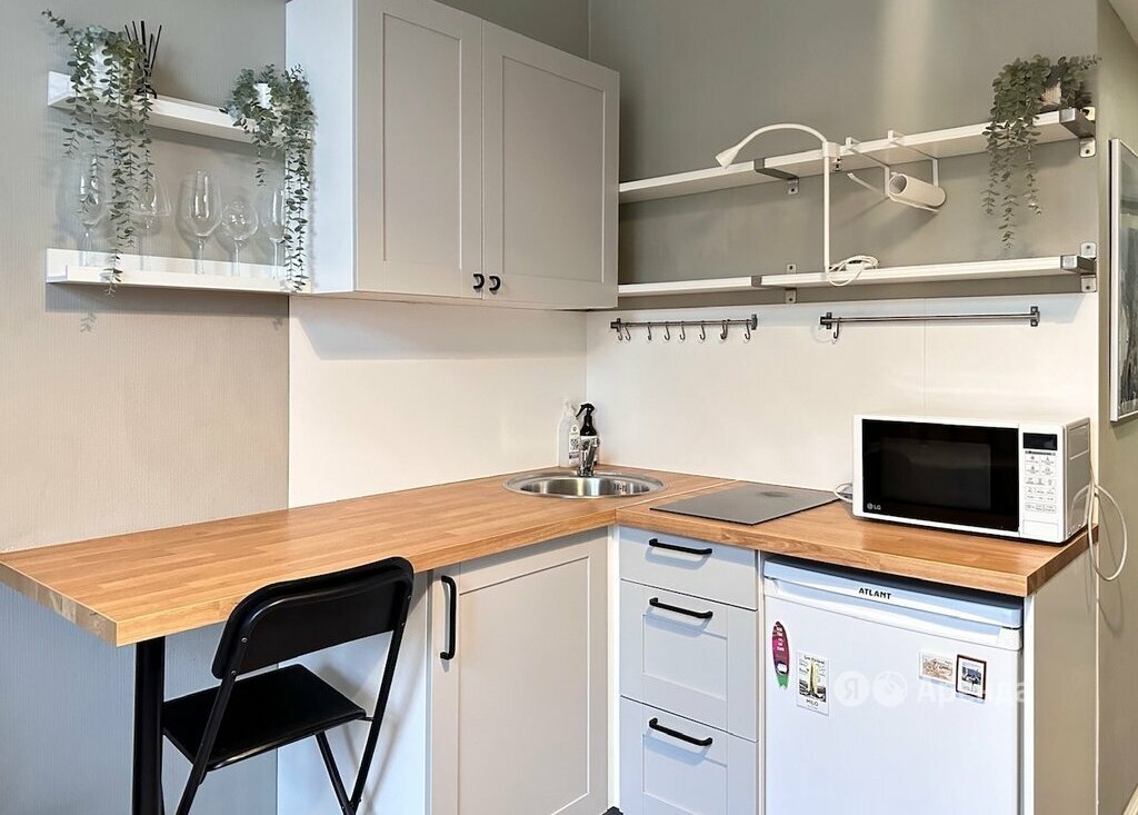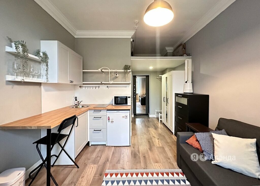 Сдаётся студия площадью 19 кв.м. с евроремонтом на 4 этаже в 5-этажном доме на срок от 11 месяцев. Из техники есть: