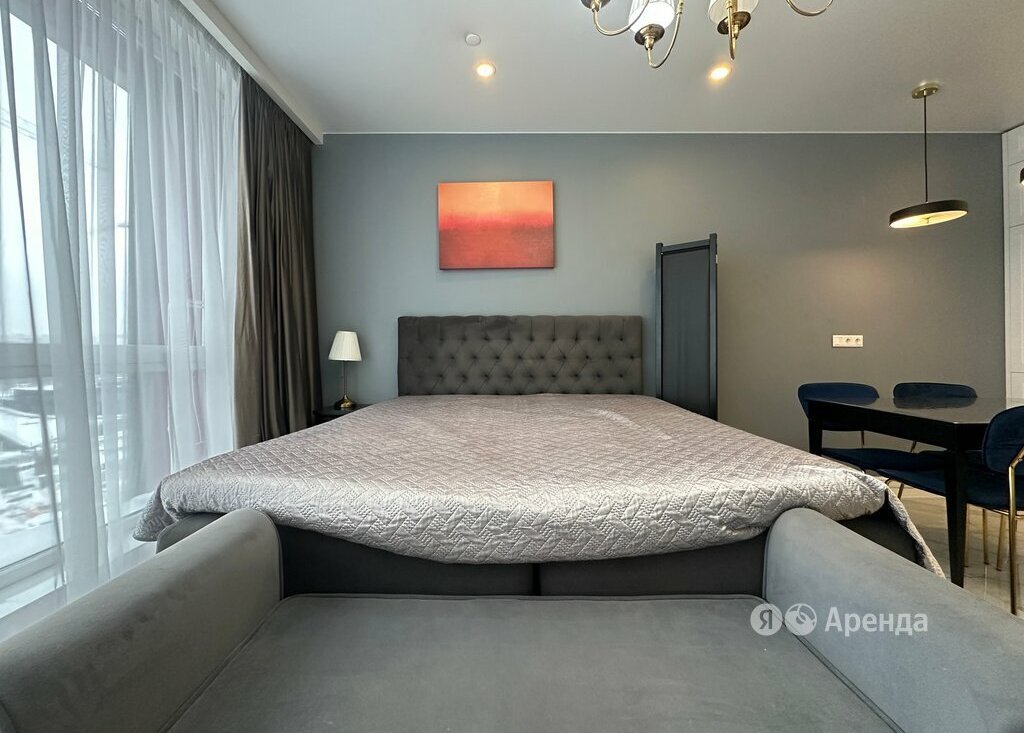 Сдаётся студия площадью 33 кв.м. с дизайнерским ремонтом на 7 этаже в 14-этажном доме на срок от 11 месяцев. Из техники есть: