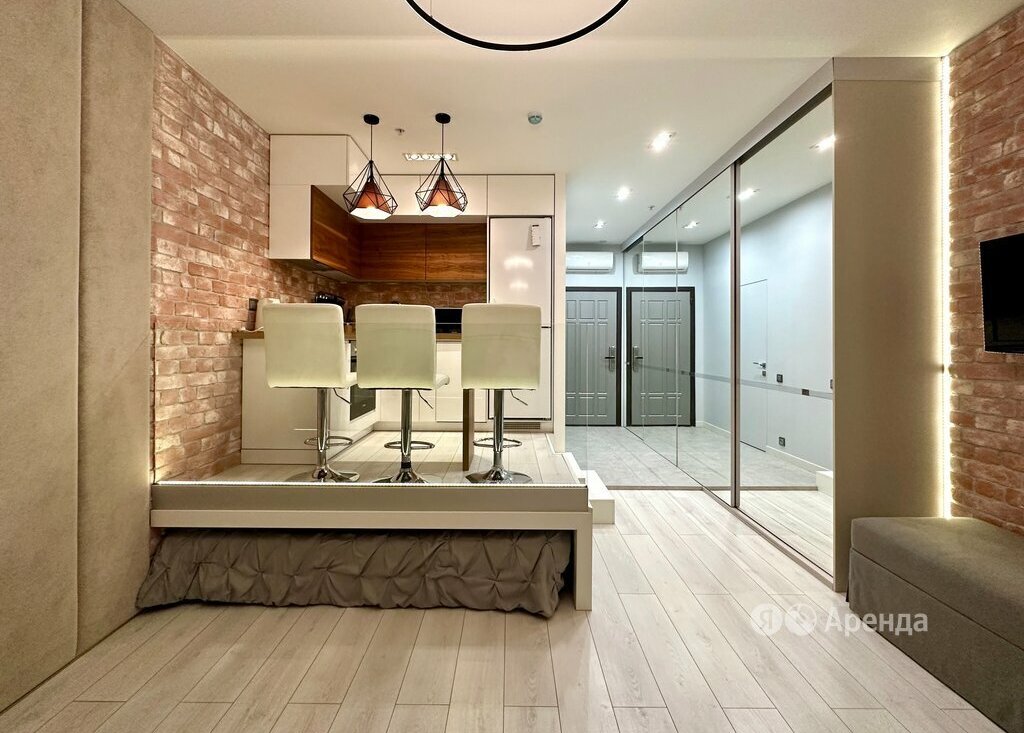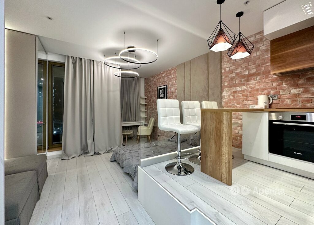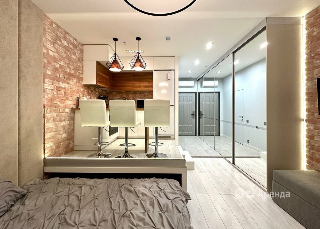Сдаётся студия площадью 33 кв.м. с дизайнерским ремонтом на 11 этаже в 15-этажном доме на срок от 11 месяцев. Из техники есть: