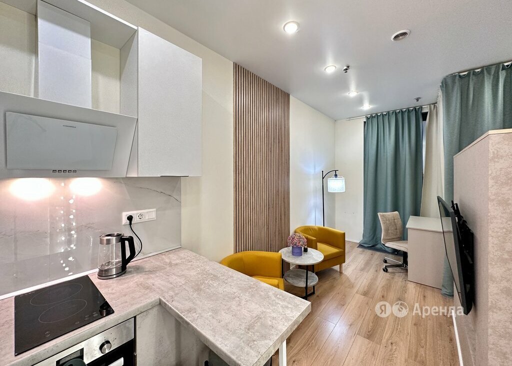 Сдаётся студия площадью 33 кв.м. с евроремонтом на 12 этаже в 13-этажном доме на срок от 11 месяцев. Из техники есть: