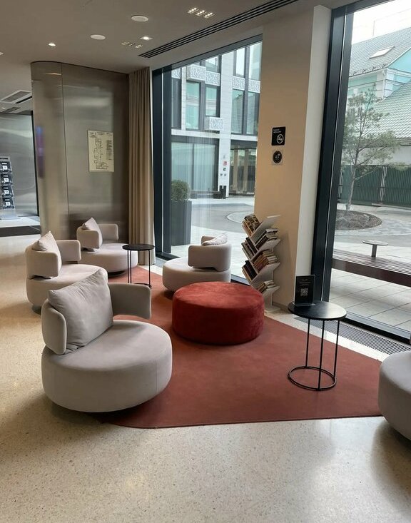 на первом этаже — кофейни и сервисы для жителей;
