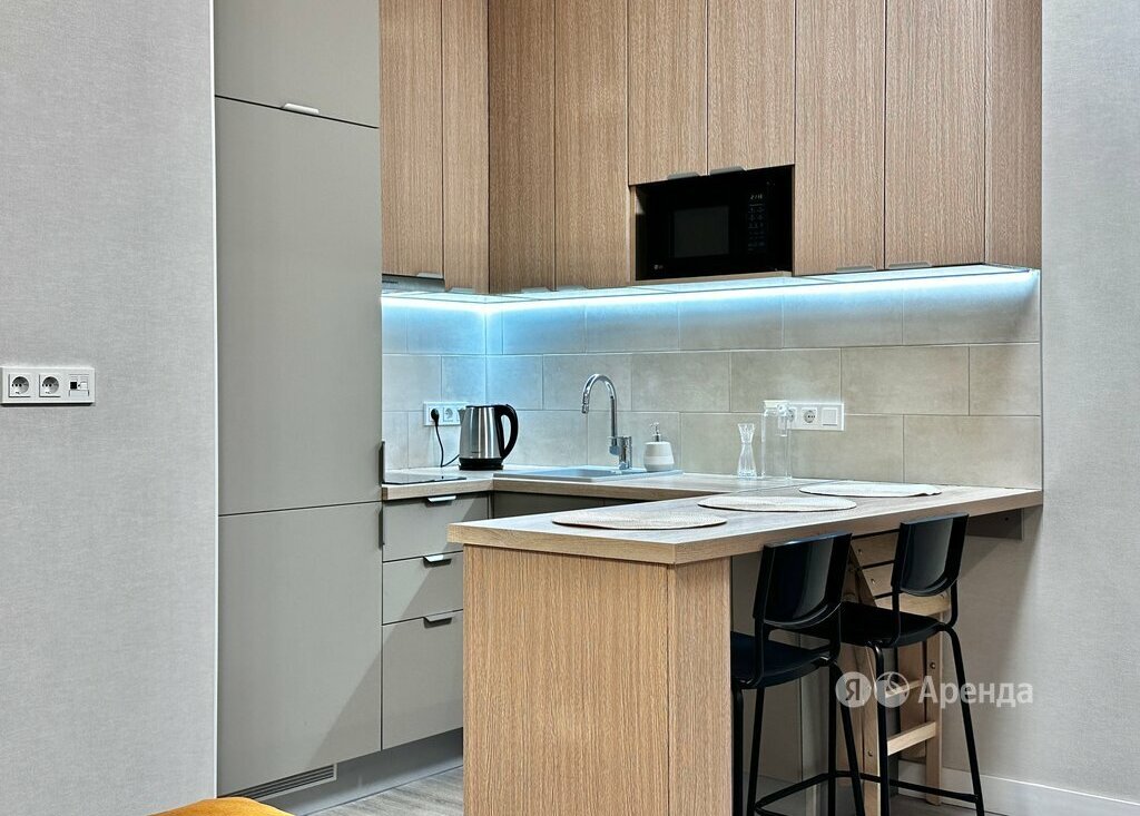 Сдаётся впервые студия площадью 27 кв.м. с евроремонтом на 21 этаже в 45-этажном доме. Из техники есть: