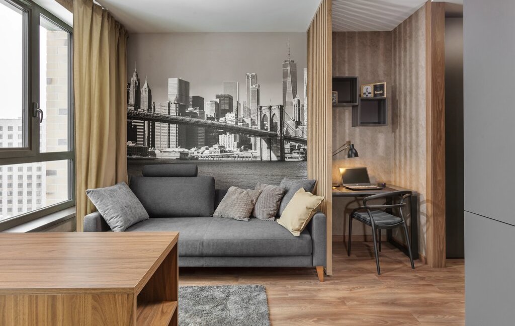 Современная студия c авторским дизайном и продуманным функционалом в монолитном доме бизнес-класса в шаговой доступности от станции метро «Селигерская»
