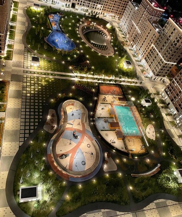 Круглосуточная охрана, подземный паркинг, большая закрытая территория, вход на территорию возможен по отпечаткам пальцев.