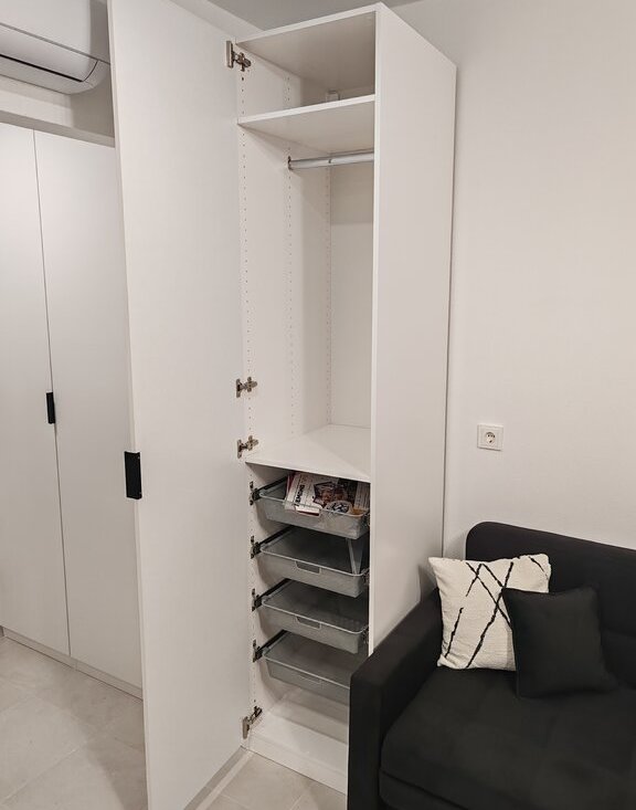 Студия 25 м, два окна, сдается впервые. Только долгосрочная аренда. В квартире есть все необходимое для комфортного проживания: кровать с подъёмным механизмом и ортопедическим матрасом, диван, кондиционер, духовой шкаф с функцией СВЧ, фильтр для питьевой воды, стиральная машина, двухкамерный холодильник. В квартире достаточно мест хранения: шкафы, комод, бельевой ящик в кровати и диване. Комфортный 4 этаж, закрытый двор, окна на улицу, в квартиру попадает много света. 5-7 минут до станции МЦД-2 Перерва, возле дома остановка автобуса до станций метро Марьино и Братиславская, также до них можно дойти пешком за 20 минут.
