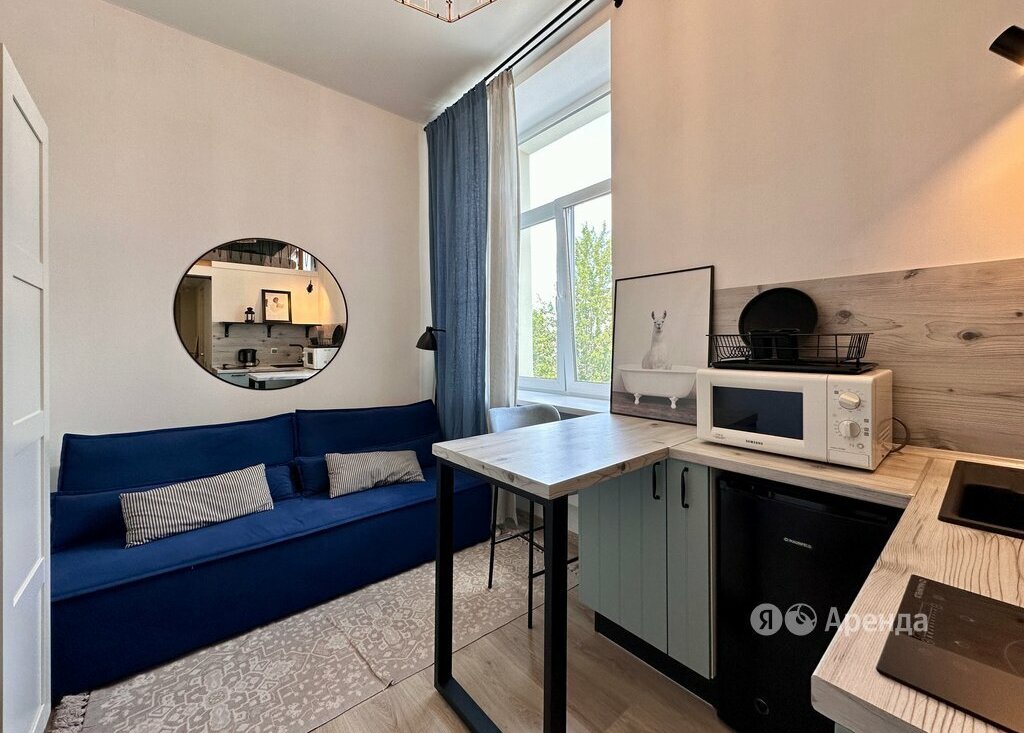 Сдаётся студия площадью 15 кв.м. с евроремонтом на 3 этаже в 5-этажном доме на срок от 11 месяцев. Из техники есть: