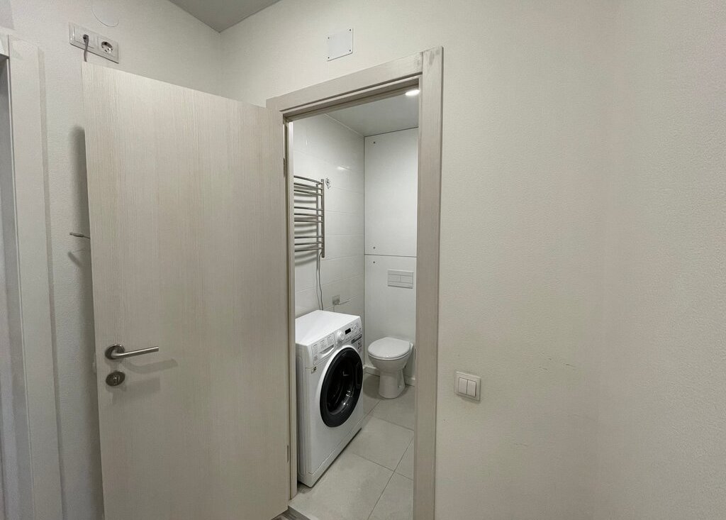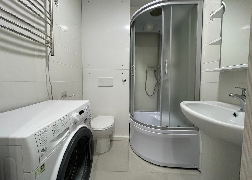 Совмещенный санузел с душевой кабиной, стиральной машиной.