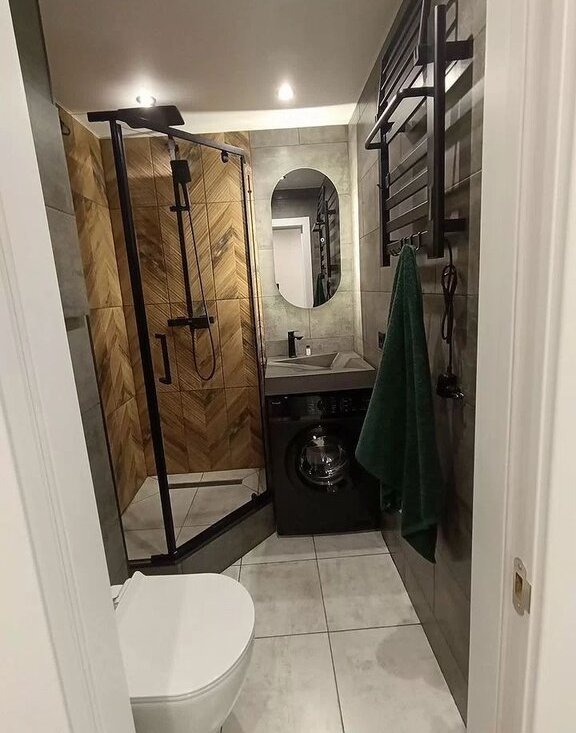 Санузел совмещенный, выполнен в современном стиле.