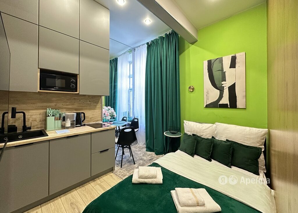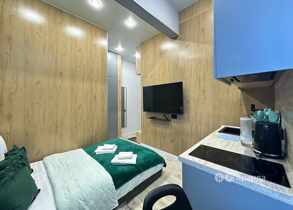 Сдаётся студия площадью 16 кв.м. с дизайнерским ремонтом на 1 этаже в 5-этажном доме на срок от 11 месяцев.