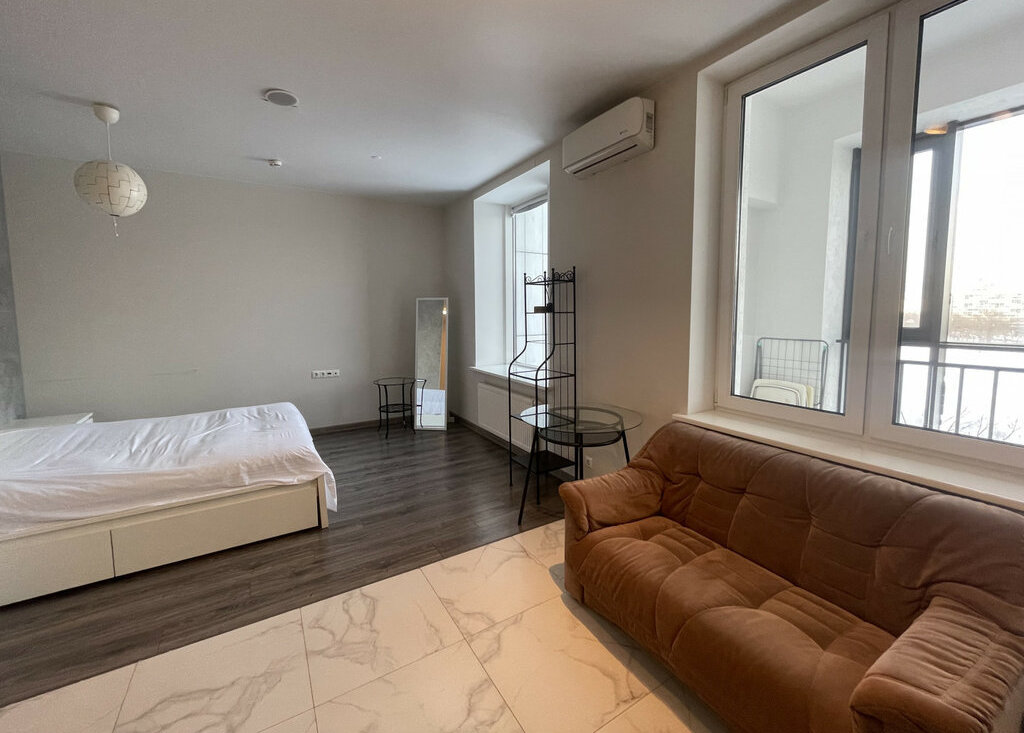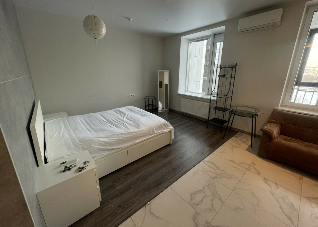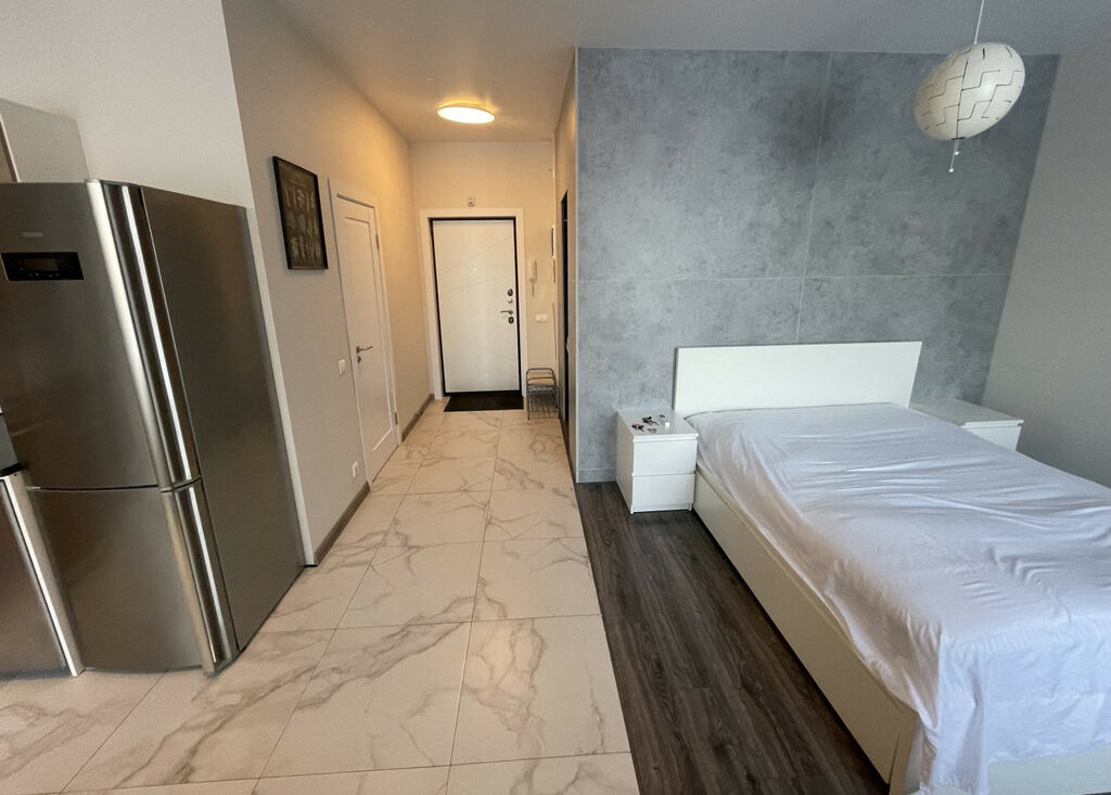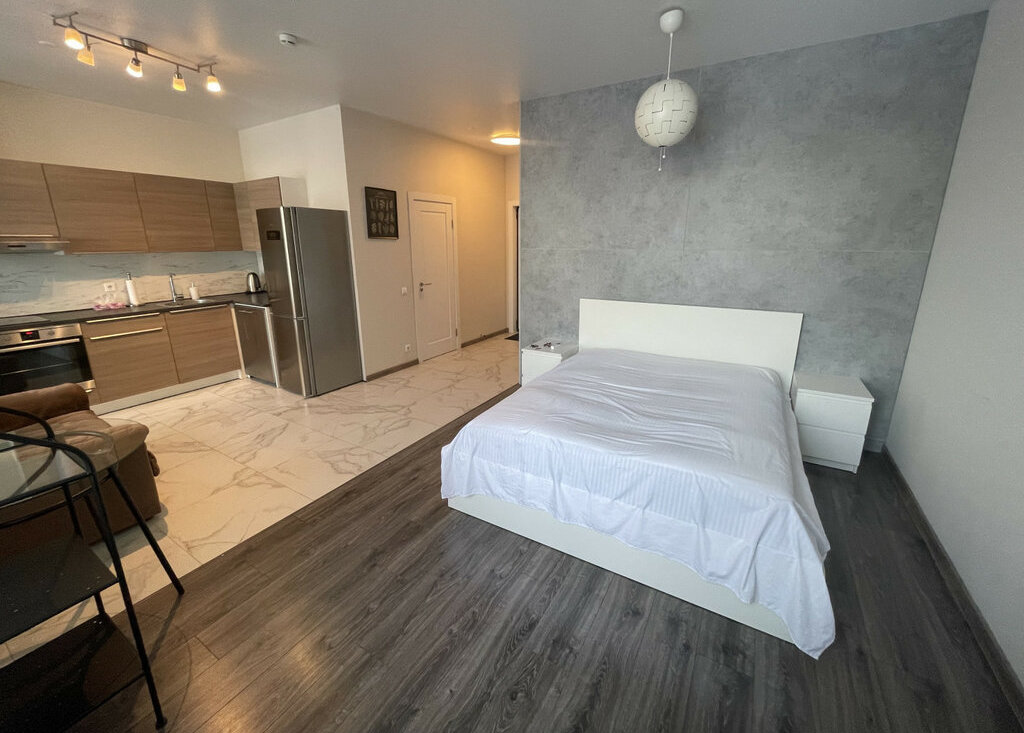 Сдаётся светлая студия с панорамным видом на набережную.Полностью меблирована и оснащена бытовой техникой: вместительная гардеробная, двуспальная кровать, диван, посудомоечная и стиральная машины, кондиционер.Большой балкон, на котором можно организовать зону отдыха в теплое время года.При желании можно арендовать парковочное место.