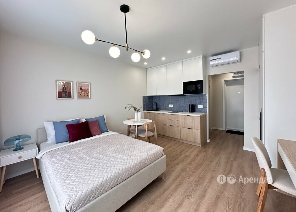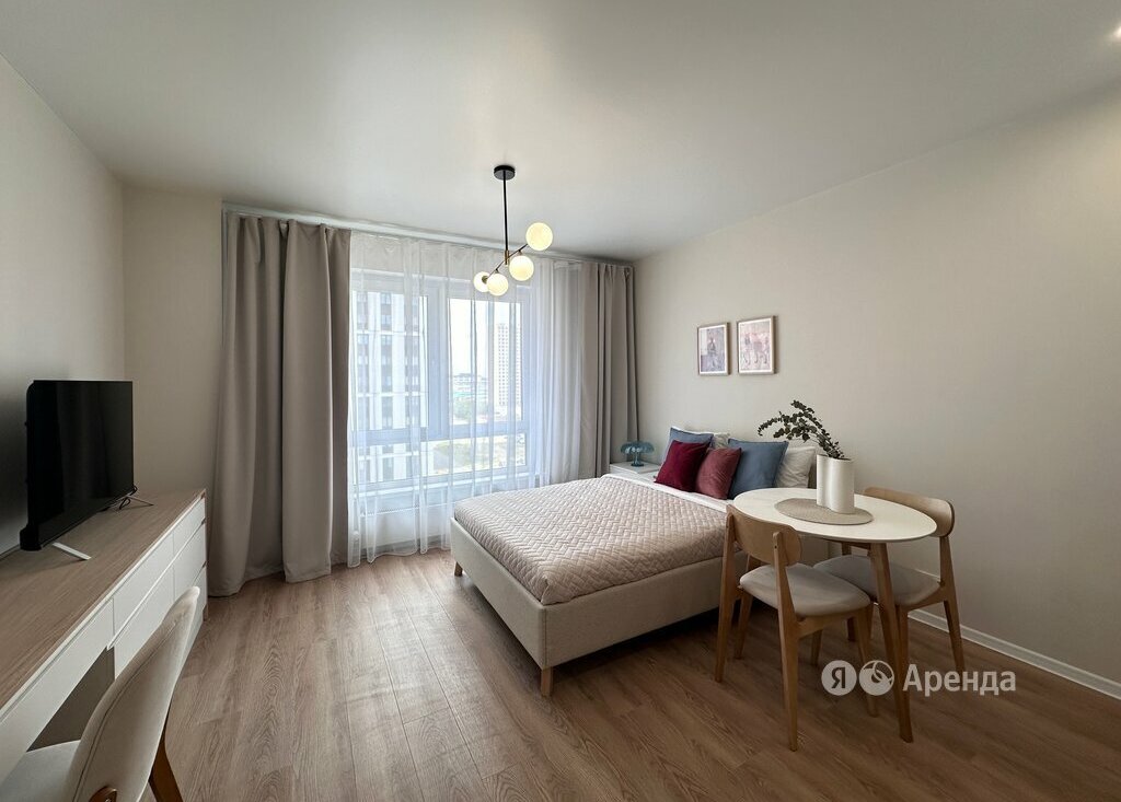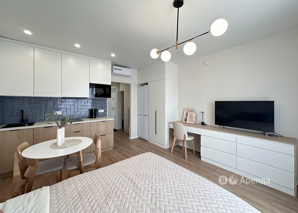 Сдаётся студия площадью 23 кв.м. с евроремонтом на 9 этаже в 33-этажном доме на срок от 11 месяцев. Из техники есть: