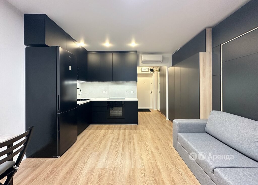 Сдаётся студия площадью 24 кв.м. с дизайнерским ремонтом на 30 этаже в 33-этажном доме на срок от 11 месяцев. Из техники есть: