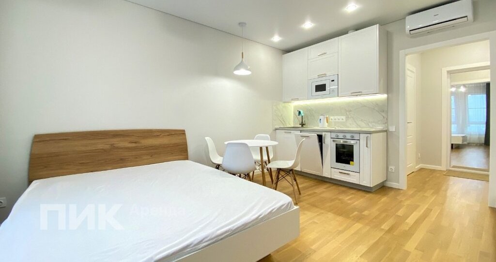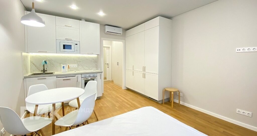 Сдаётся светлая квартира-студия с евроремонтом и совмещённым санузлом в ЖК Кронштадтский 9, без депозита!