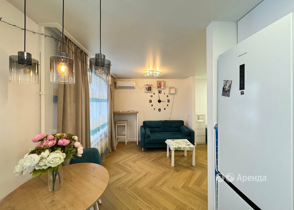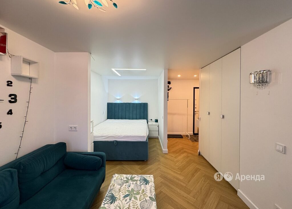 Сдаётся студия площадью 31 кв.м. с евроремонтом на 1 этаже в 9-этажном доме на срок от 11 месяцев. Из техники есть: