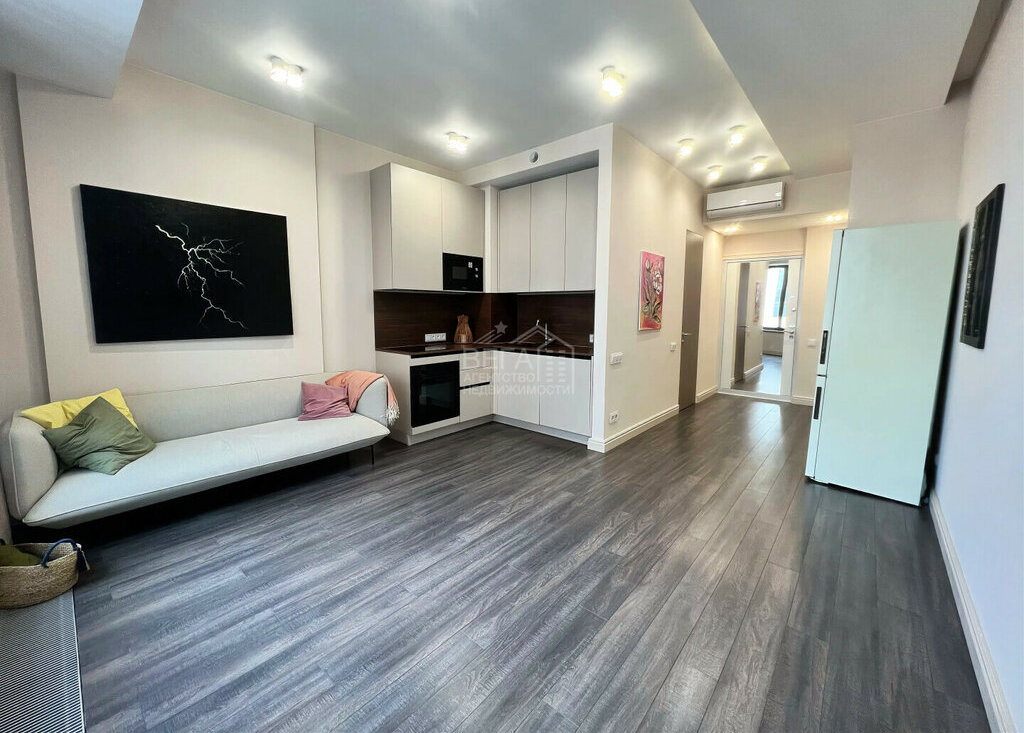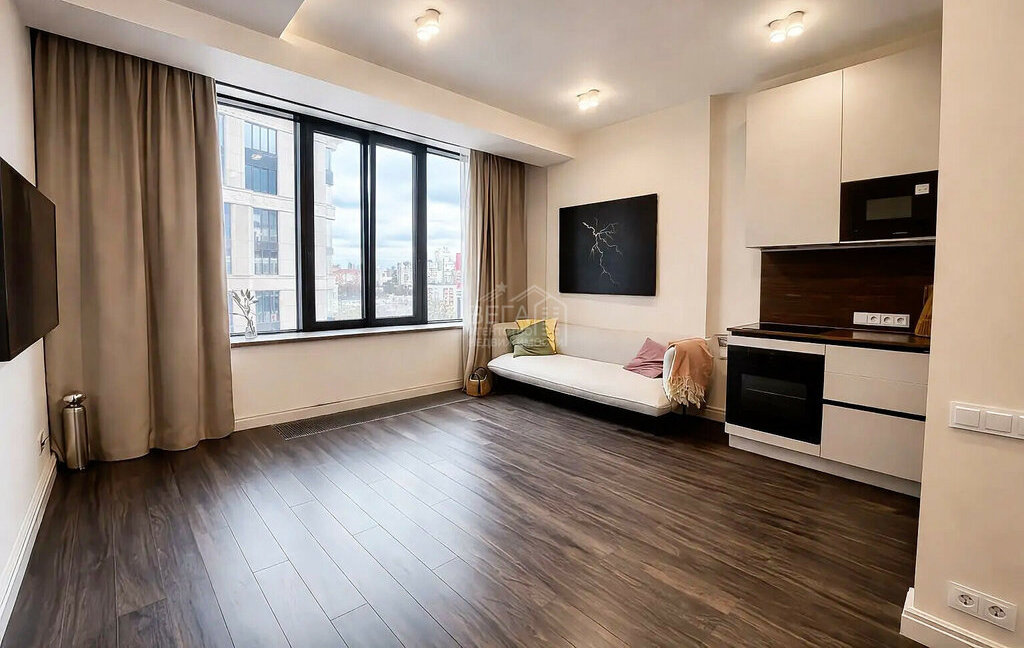 Апартаменты выполнены в формате евро-студии, где каждая деталь продумана до мелочей: отдельная гардеробная, шумоизоляция всего помещения, кондиционер, удобная планировка, которая делает пространство одновременно функциональным и уютным. Отделка выполнена из качественных материалов, а кухня полностью оборудована встроенной техникой. Зона отдыха включает в себя удобный диван (при желании пространство позволяет установить большую двуспальную кровать) и телевизор. Особое внимание уделено свету и планировке: большие окна наполняют пространство естественным освещением, визуально расширяя границы квартиры, а вид направлен во двор и частично на город с шикарным обзором на северо-восточную сторону, что создаёт ощущение простора и приватности даже в центре мегаполиса. Каждый сантиметр апартаментов создан с мыслью о комфорте и практичности - идеально для жизни!