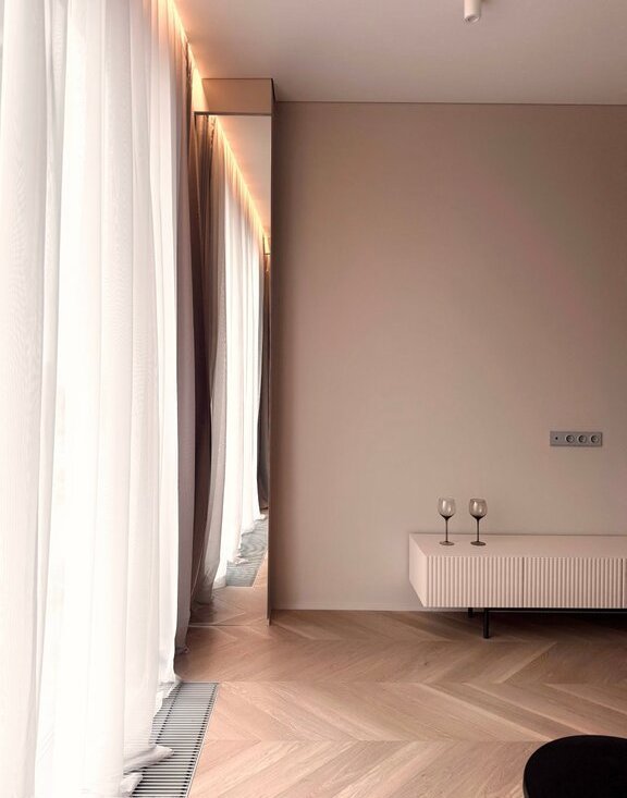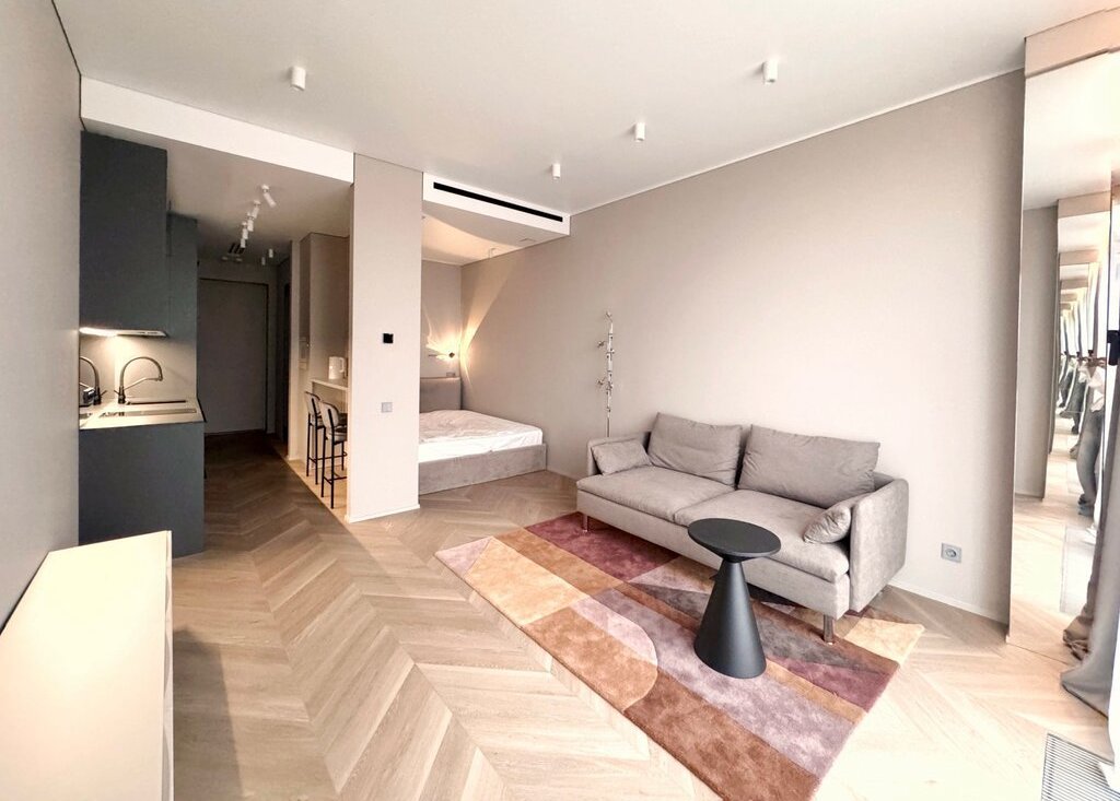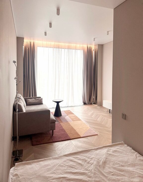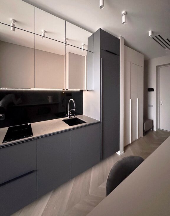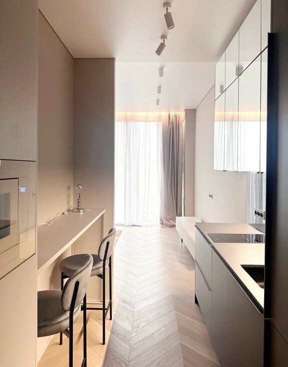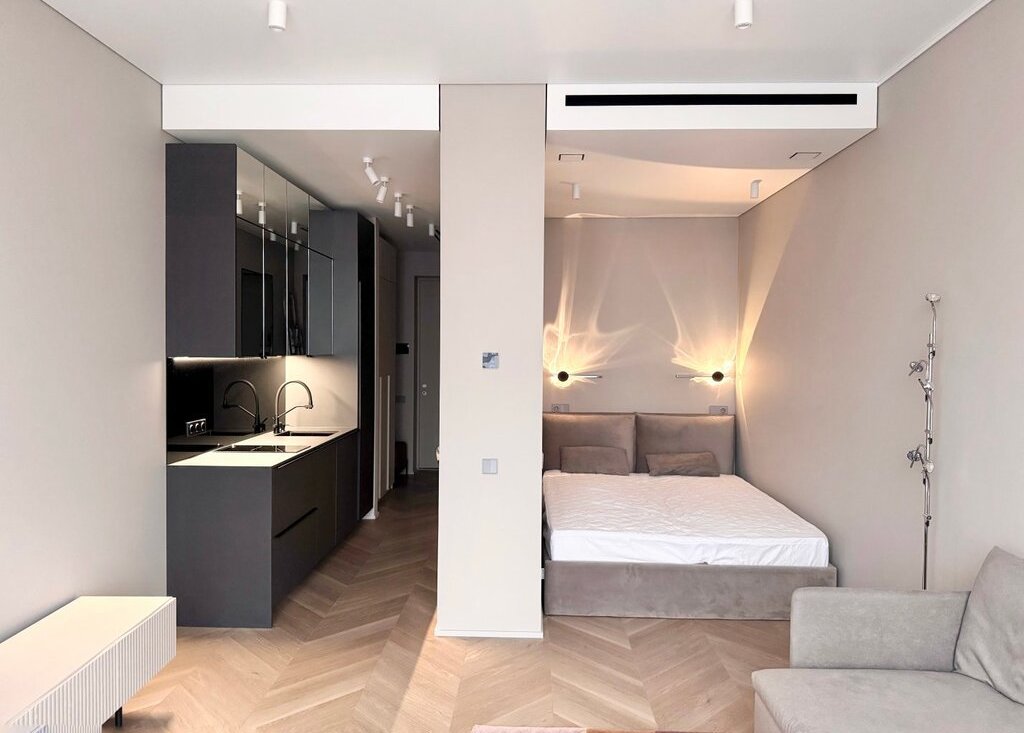 - Просторное помещение с продуманным использованием площади, качественным ремонтом и современной мебелью.