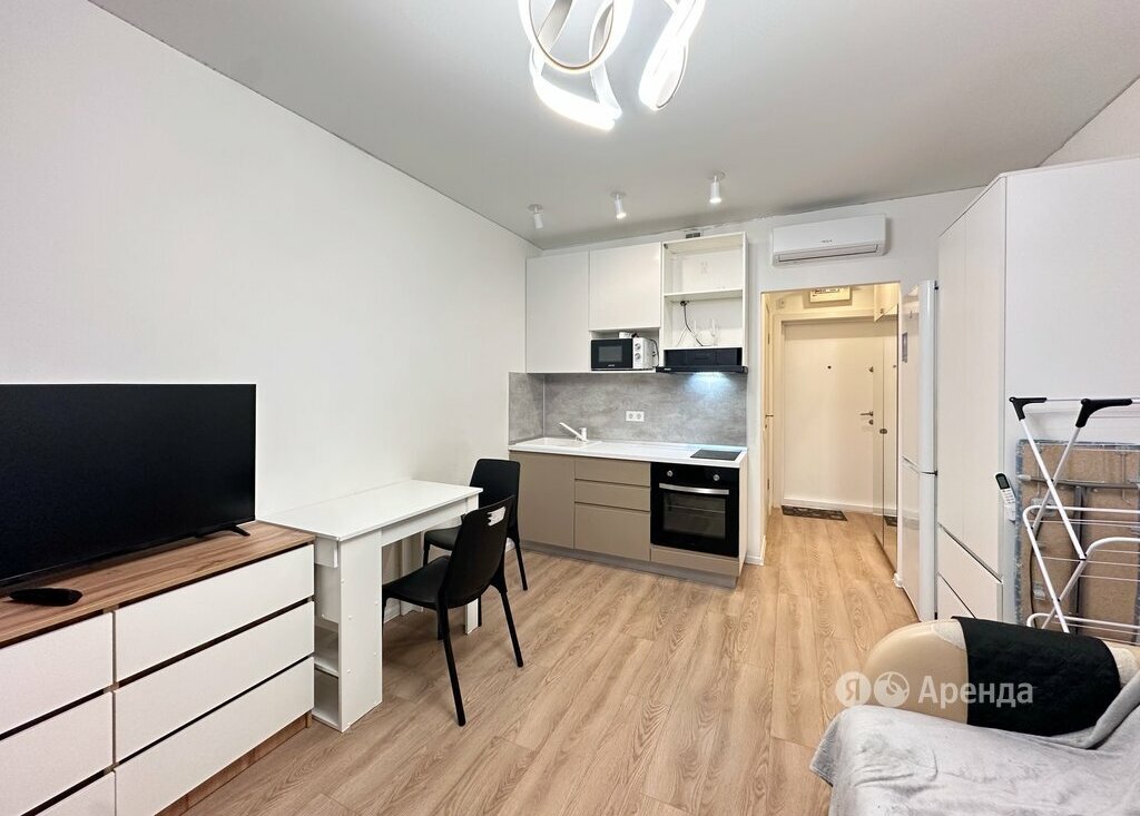 Сдаётся студия площадью 19 кв.м. с косметическим ремонтом на 25 этаже в 25-этажном доме на срок от 11 месяцев. Из техники есть: