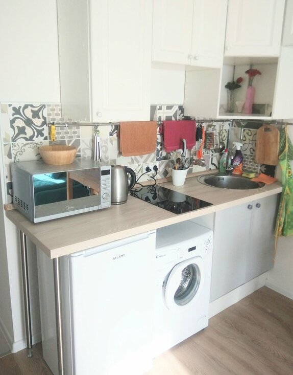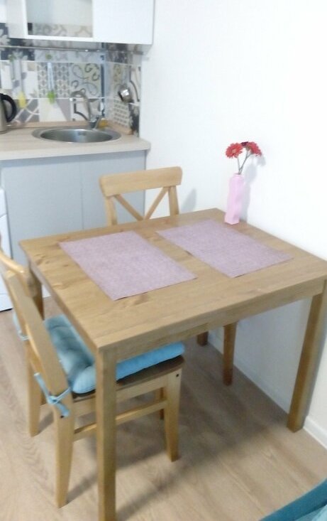 Вся необходимая мебель уже есть, как в комнате, так и на кухне. Для вашего комфорта в квартире есть холодильник, телевизор,микроволновка и стиральная машина, фен, утюг. Санузел совмещённый и оборудован душевой кабиной.