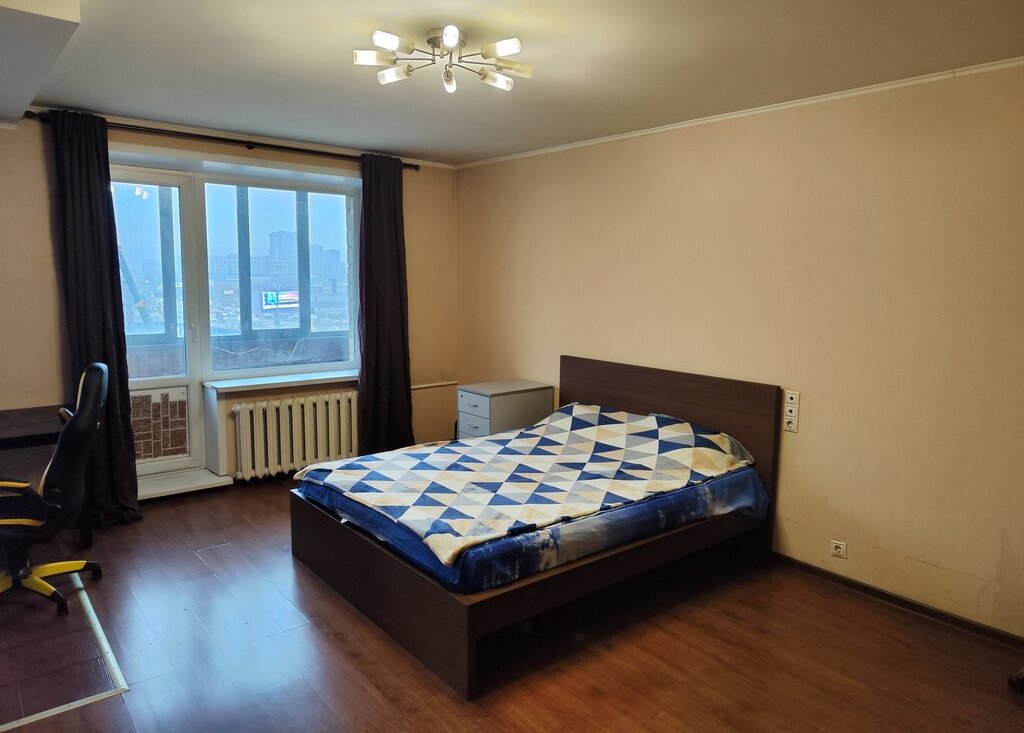 Сдается 1-комнатная квартира-студия на 9-м этаже в 9-ти этажном кирпичном доме на длительный срок. Светлая, чистая, уютная квартира. Есть вся необходимая мебель и техника для комфортного проживания. Общая площадь- 31м., комната-19м., кухня- 6м., СУС. Холодильник, СВЧ, стиральная машина. Имеется застекленная лоджия. Рассмотрим всех приличных людей, 1-2 человека. Отдельно оплачиваются: электричество и вода.