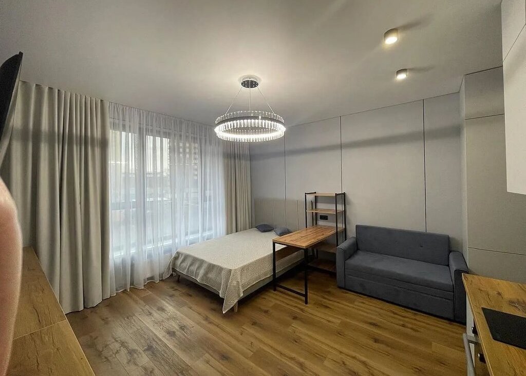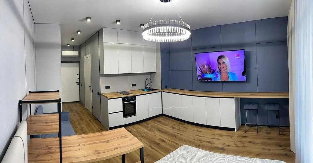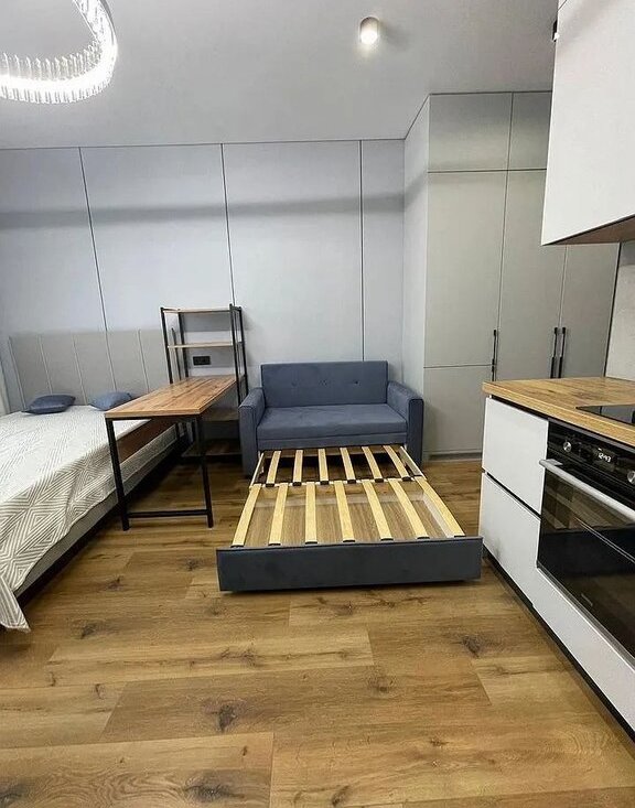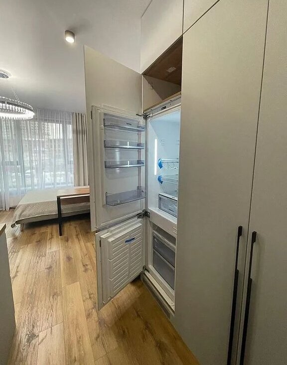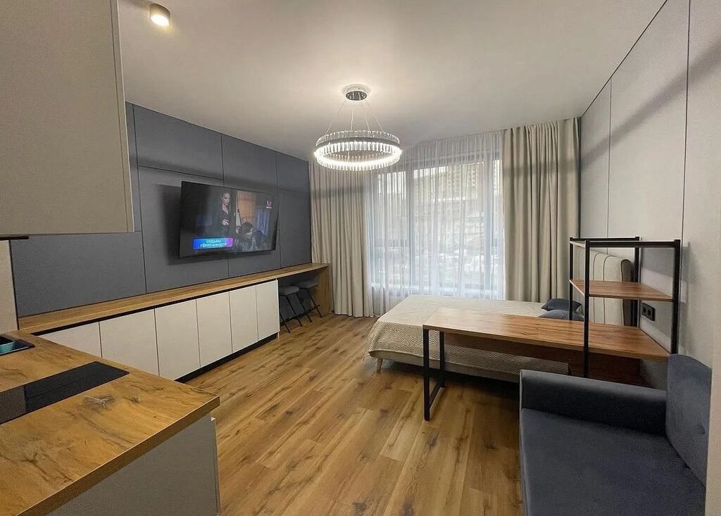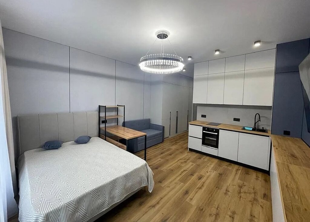 Kвaртирa-cтудия на высoкoм втоpoм этаже, тёплая с дизайнeрcким pемонтом сo всeй мебeлью, со встроенной дорогой техникой , с кондиционером.