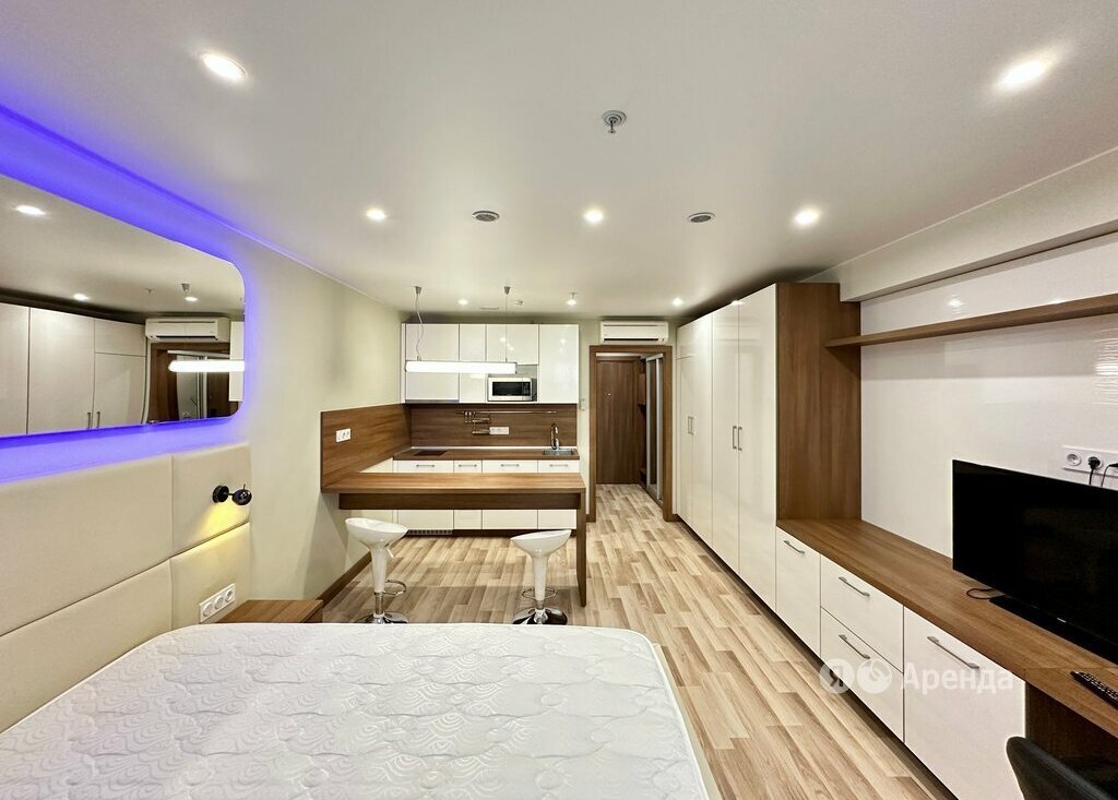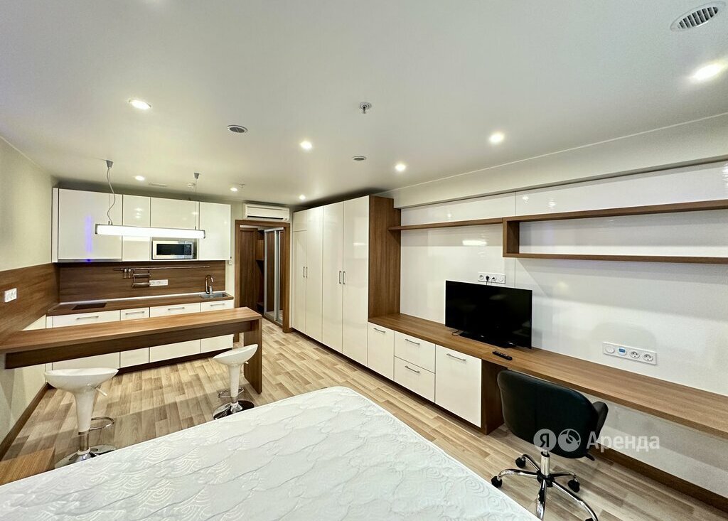 Сдаётся студия площадью 29 кв.м. с дизайнерским ремонтом на 16 этаже в 24-этажном доме на срок от 11 месяцев. Из техники есть:
