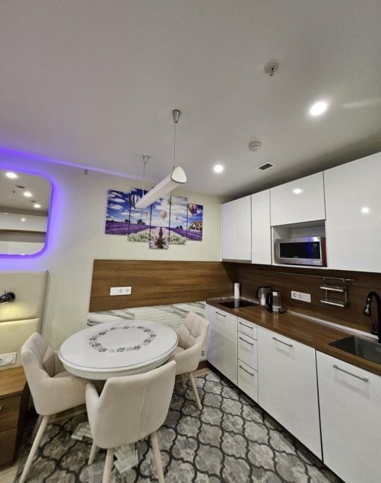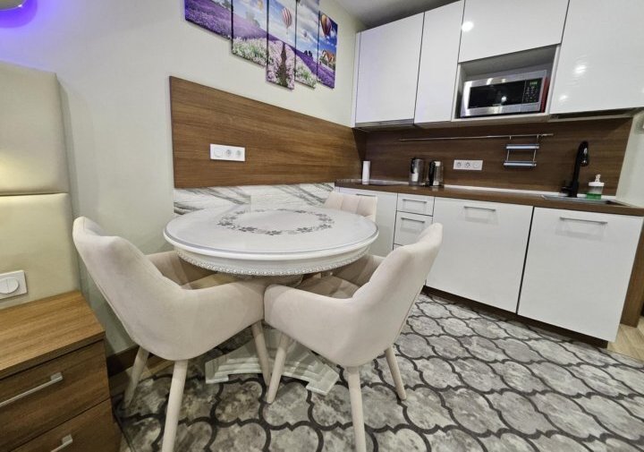 В апартаментах выполнен хороший ремонтом и обладает хорошим видом из окна. В апартаментах есть холодильник, встроенная кухня и Wi-Fi.