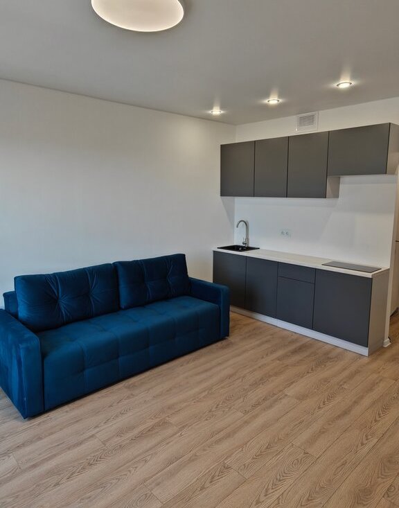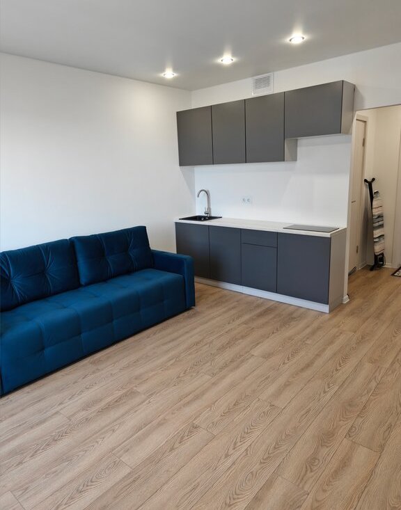 Уютная студия оборудована новейшей бытовой техникой и мебелью, необходимой для комфортного проживания. Ранее никто не жил.