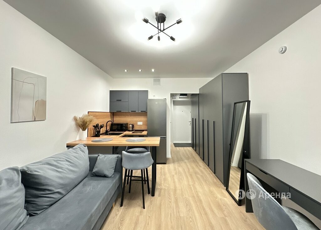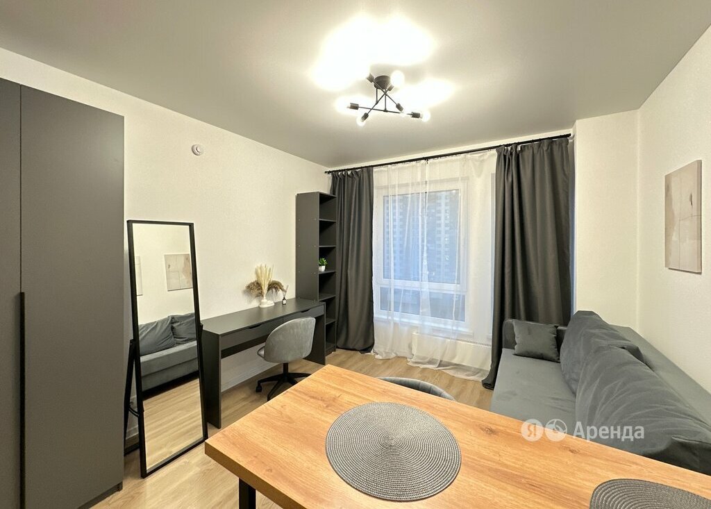Сдаётся студия площадью 20 кв.м. с евроремонтом на 7 этаже в 19-этажном доме на срок от 11 месяцев. Из техники есть: