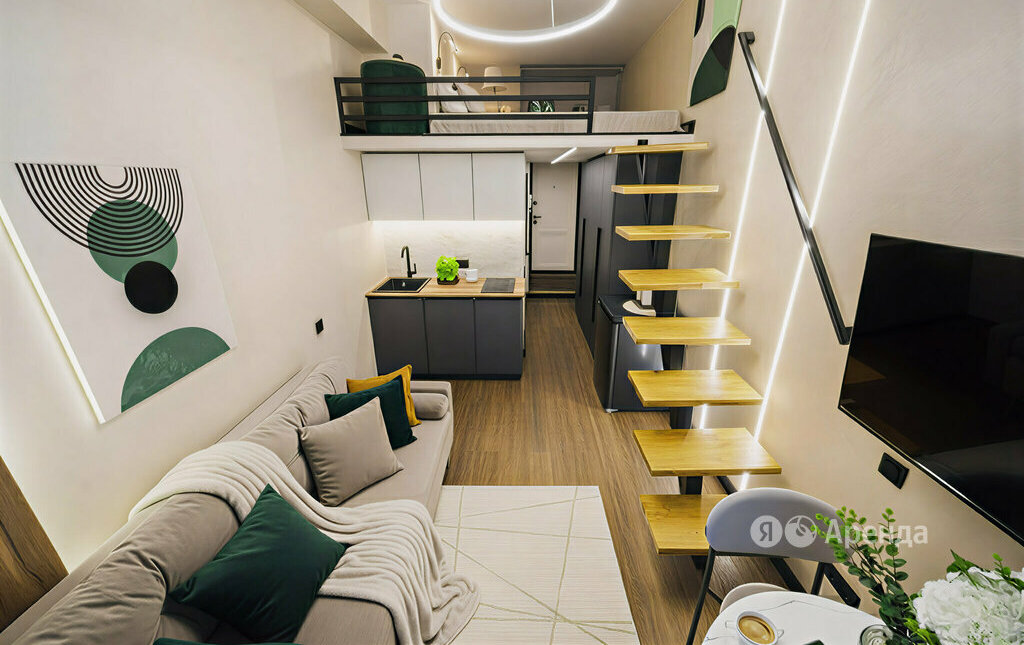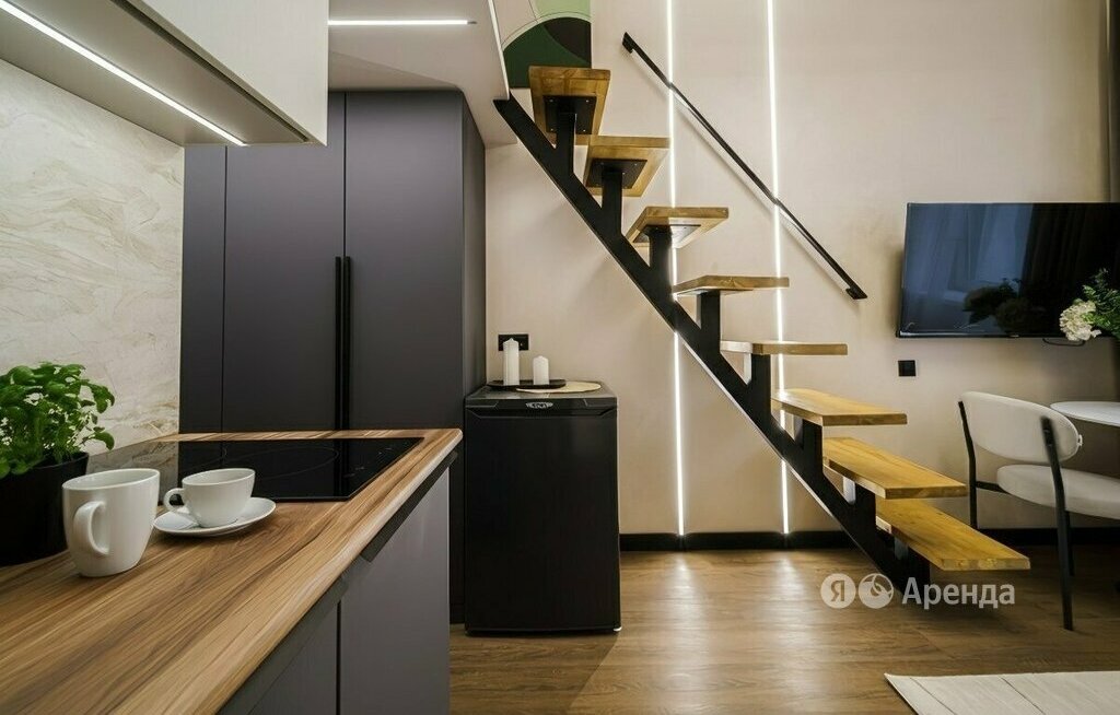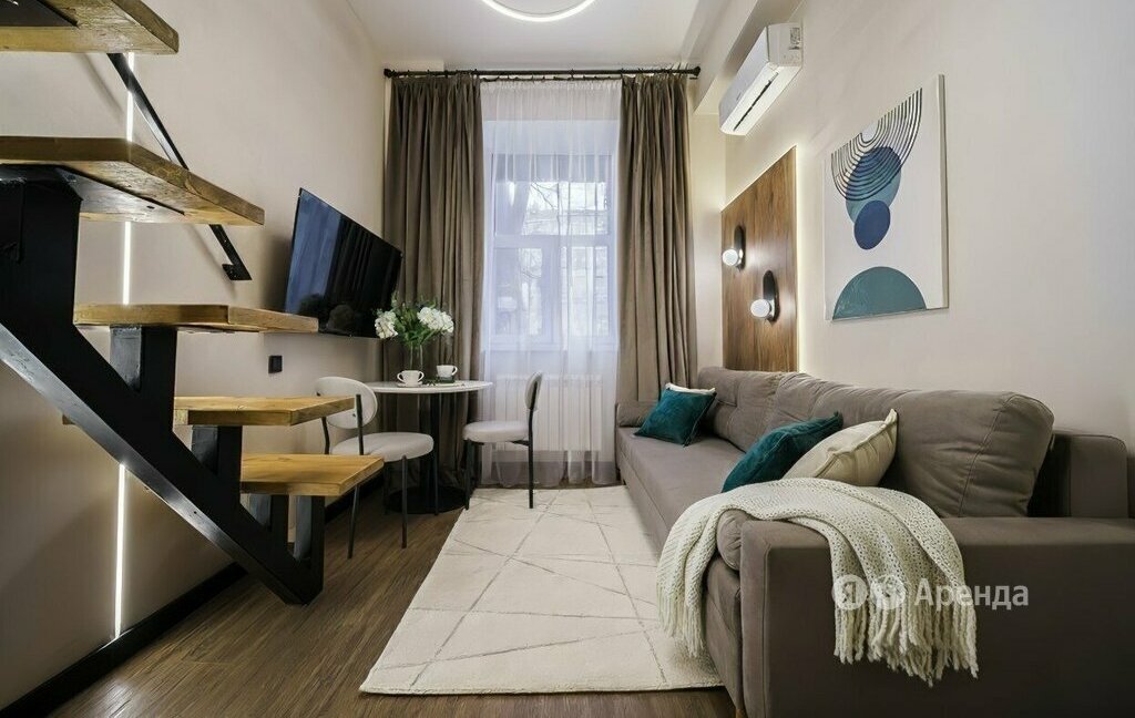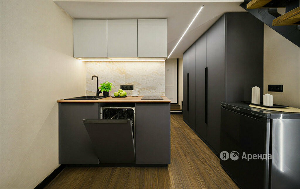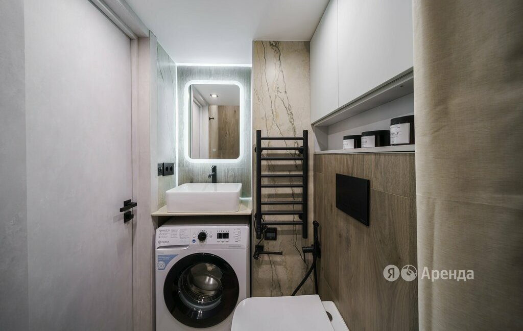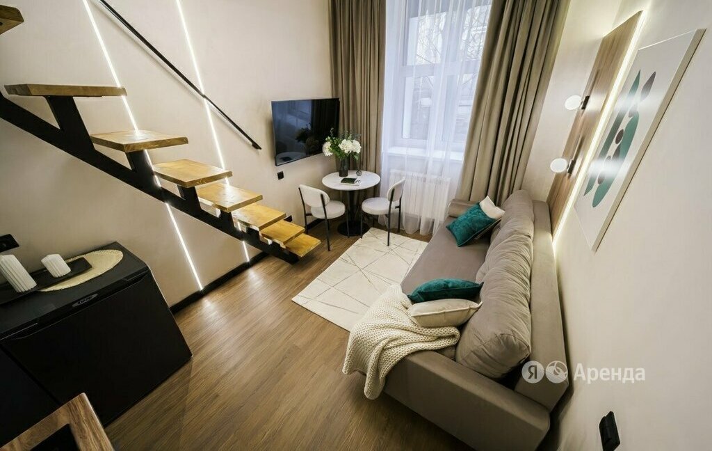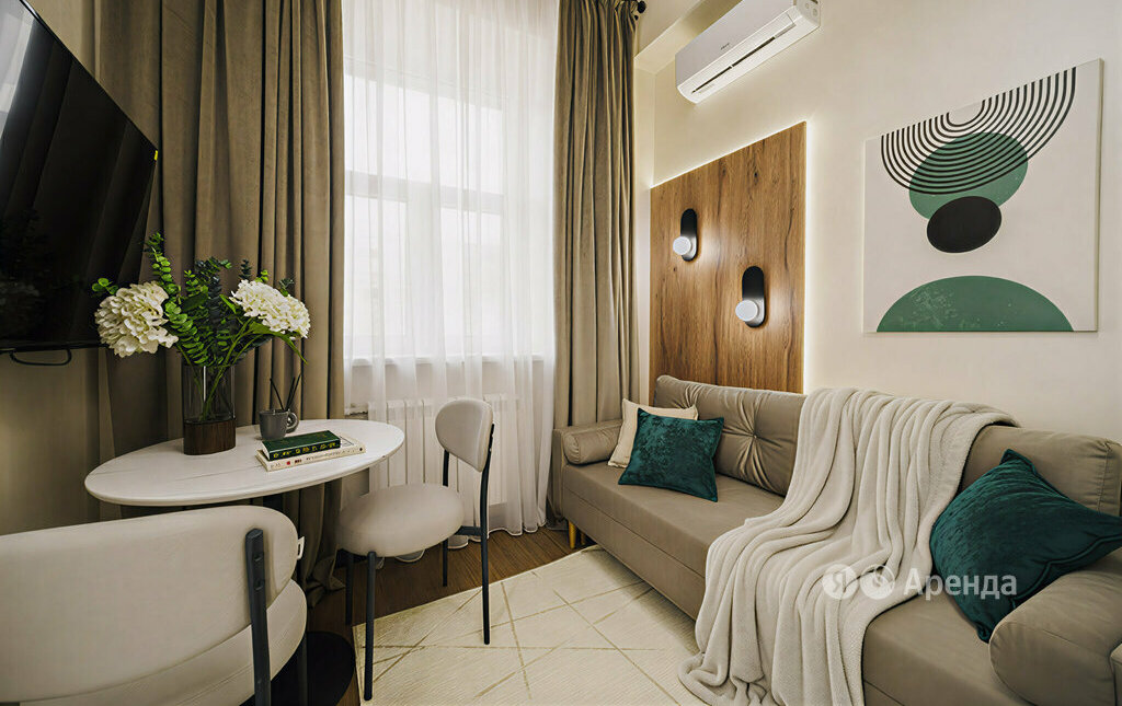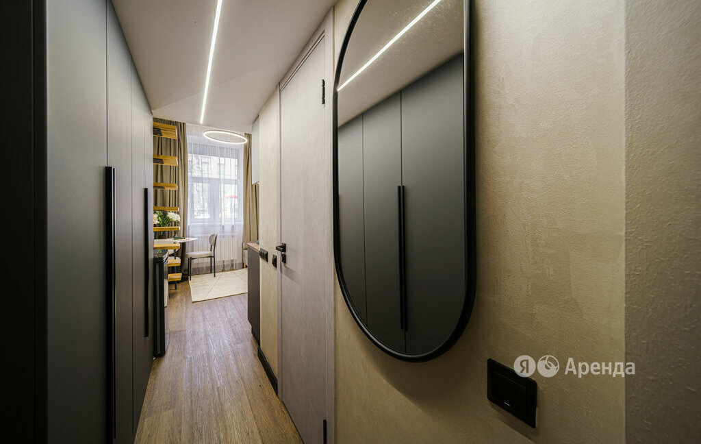 Сдаётся студия площадью 21 кв.м. с дизайнерским ремонтом на 1 этаже в 6-этажном доме на срок от 11 месяцев. Из техники есть: