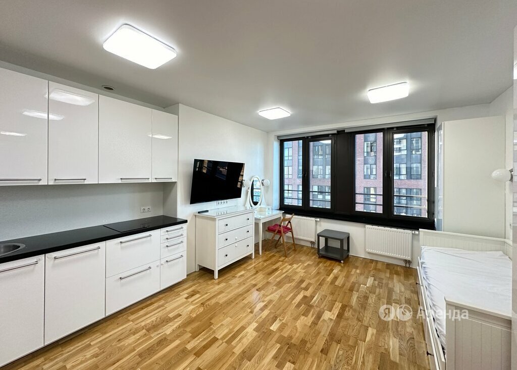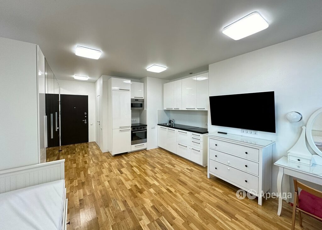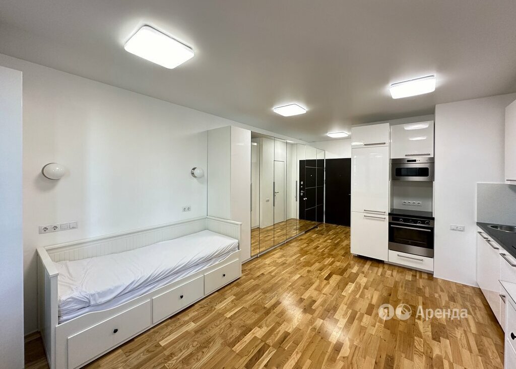Сдаётся студия площадью 29 кв.м. с дизайнерским ремонтом на 11 этаже в 47-этажном доме на срок от 11 месяцев. Из техники есть: