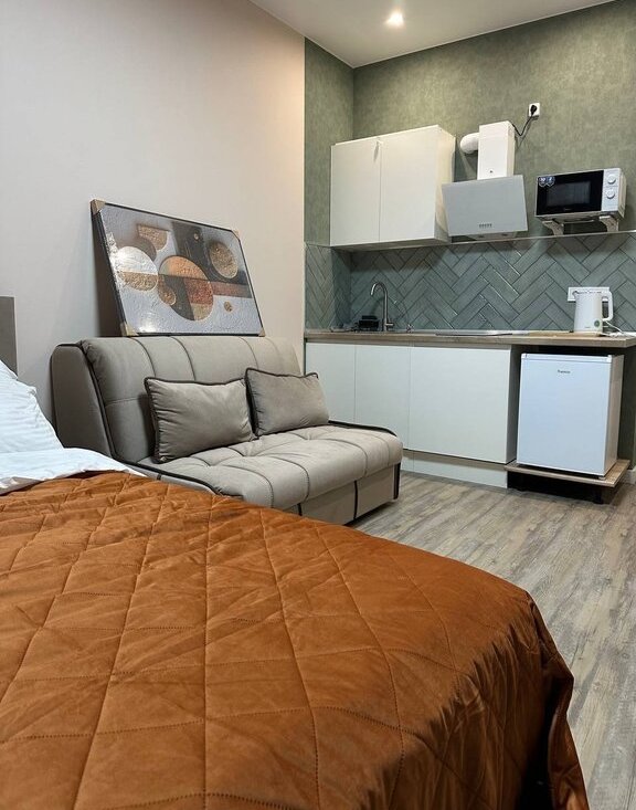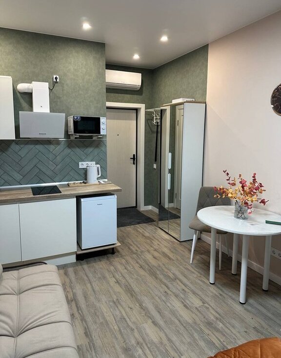 Сдается апартаменты-студия с дизайнерским ремонтом, полностью готовая для комфортного проживания. Оформление в светлых, тёплых тонах, с приятным современным интерьером придаёт чувство уюта и спокойствия.