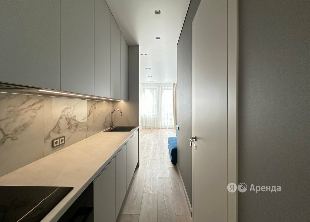 Сдаётся студия площадью 28 кв.м. с евроремонтом на 17 этаже в 23-этажном доме на срок от 11 месяцев. Из техники есть: