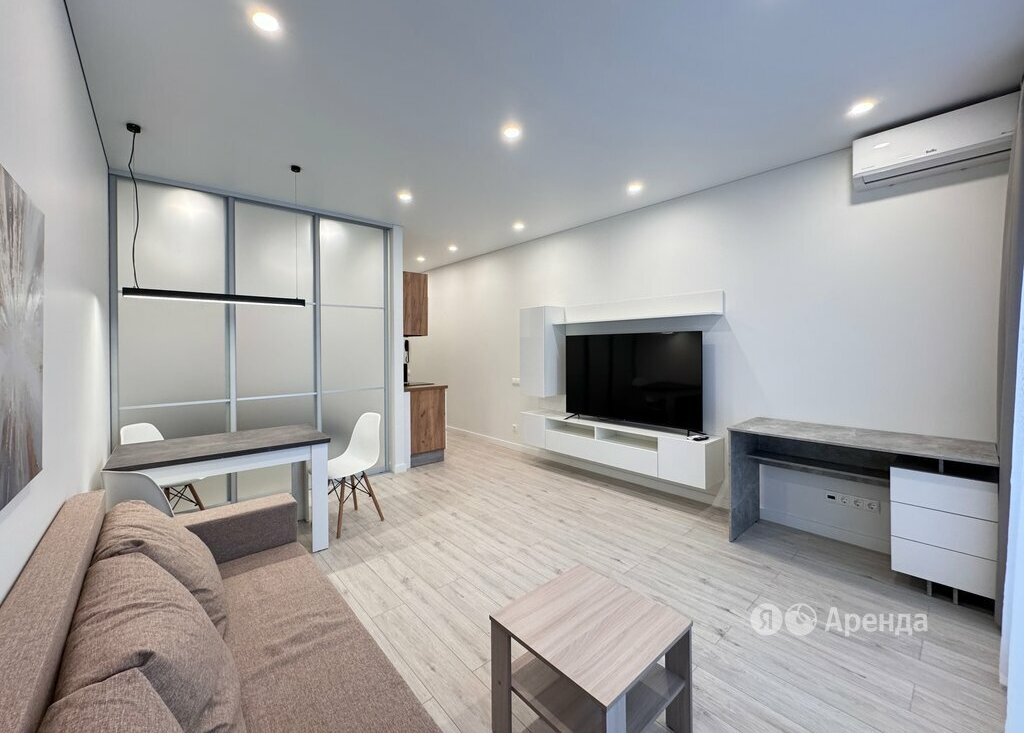 Сдаётся студия площадью 35 кв.м. с дизайнерским ремонтом на 18 этаже в 23-этажном доме на срок от 11 месяцев. Из техники есть: