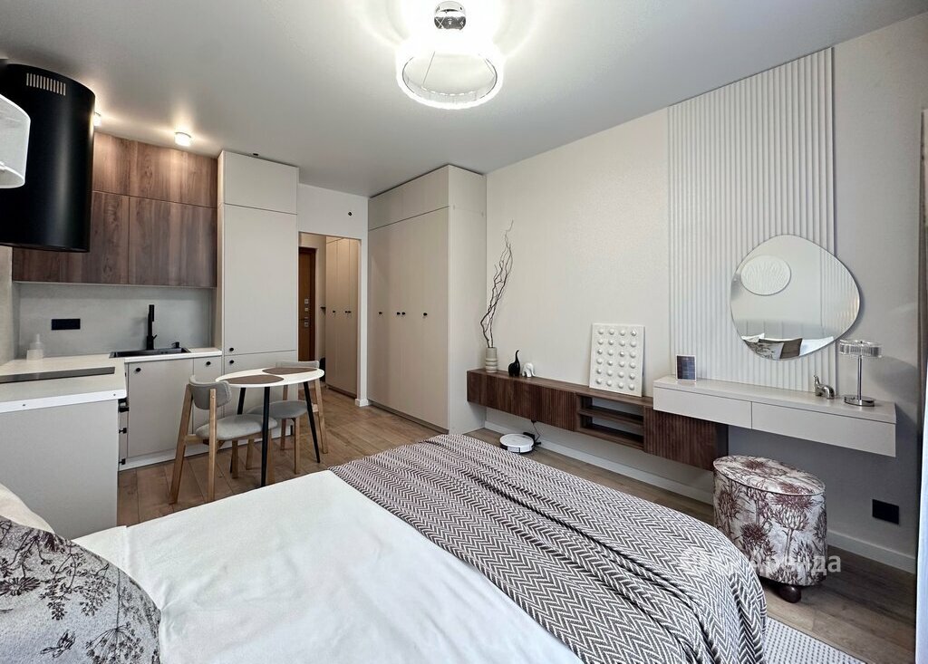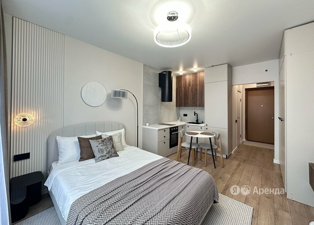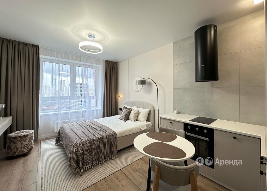 Сдаётся студия площадью 23 кв.м. с дизайнерским ремонтом на 18 этаже в 22-этажном доме на срок от 11 месяцев. Из техники есть: