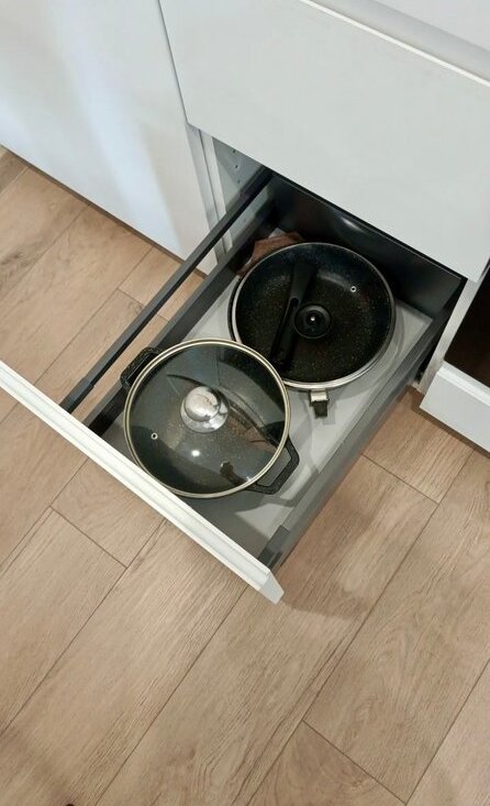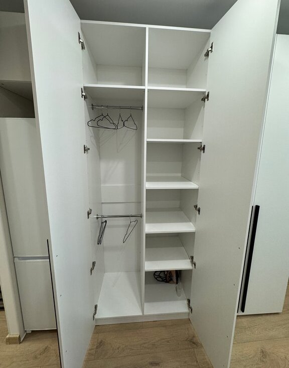 Для комфортного проживания установили двуспальную кровать с хорошим матрасом, много мест для хранения.