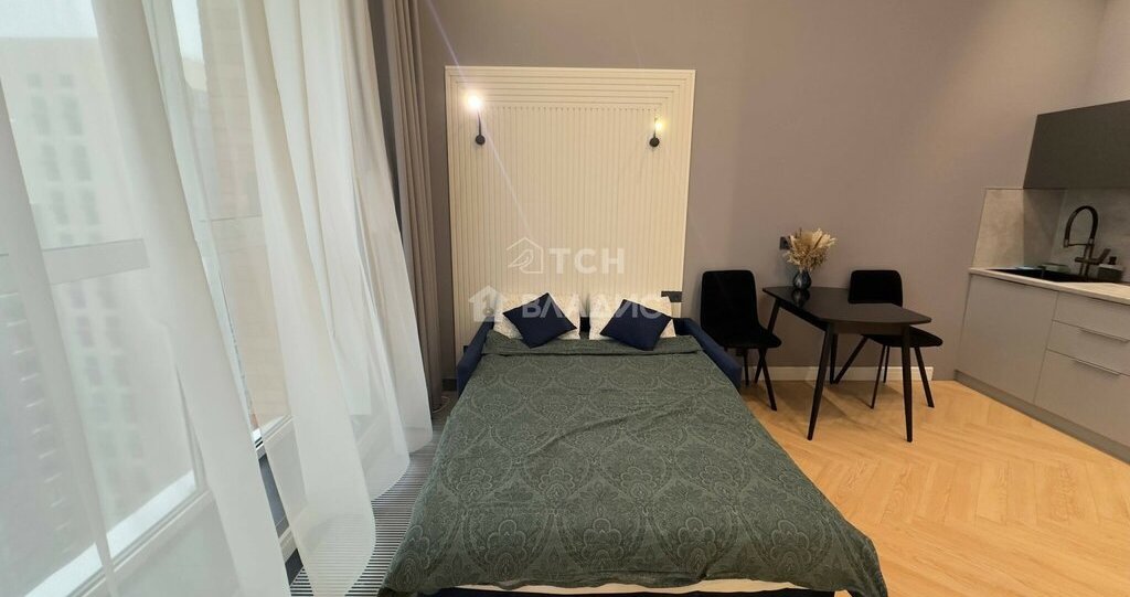 Студия площадью 26 кв. м расположена на 21 этаже монолитной новостройки 2023 года постройки. Высокие потолки (3,4 м) и большие панорамные окна создают ощущение простора и наполняют помещение естественным светом. Дизайнерский ремонт выполнен с использованием качественных материалов, что позволяет сразу заселиться без дополнительных вложений. ЖК предлагает жителям подземную парковку, свою котельную и благоустроенную территорию.