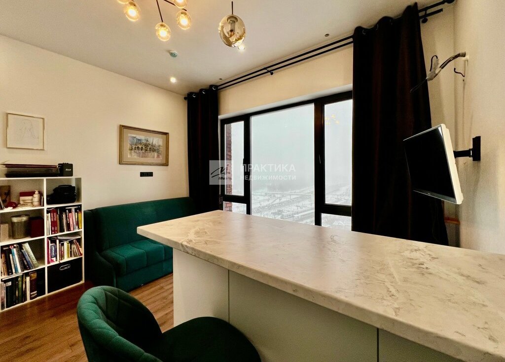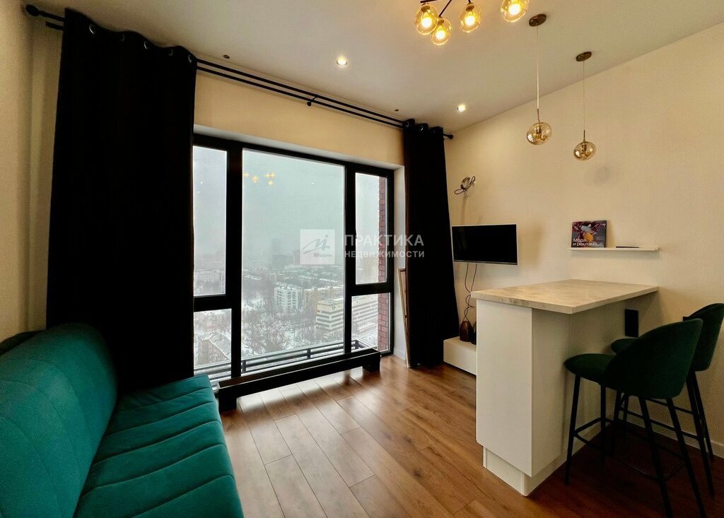 Студия расположена на 24 этаже, благодаря чему открывается панорамный вид на город.
