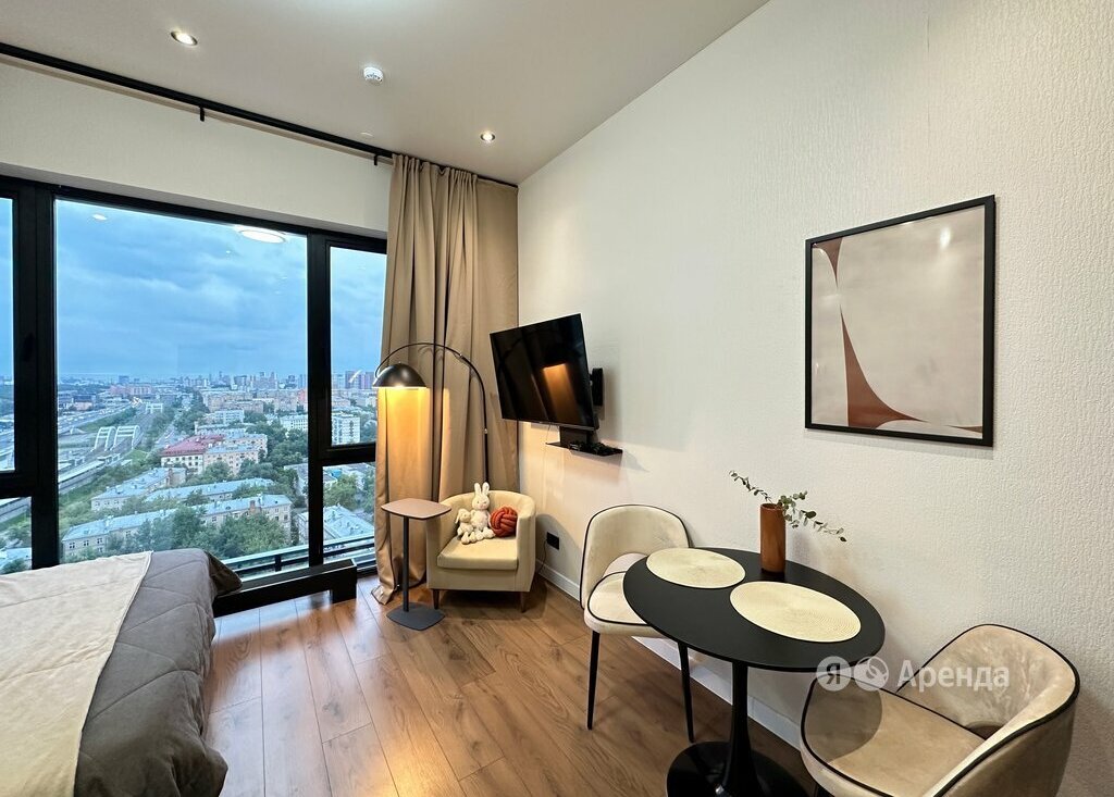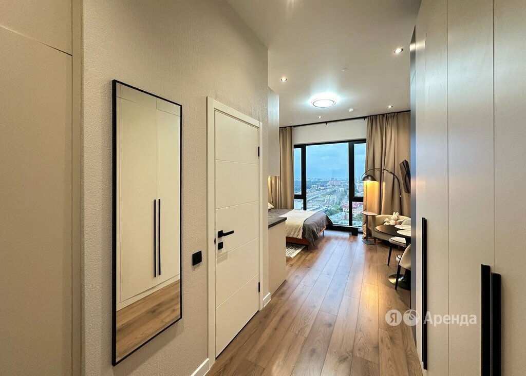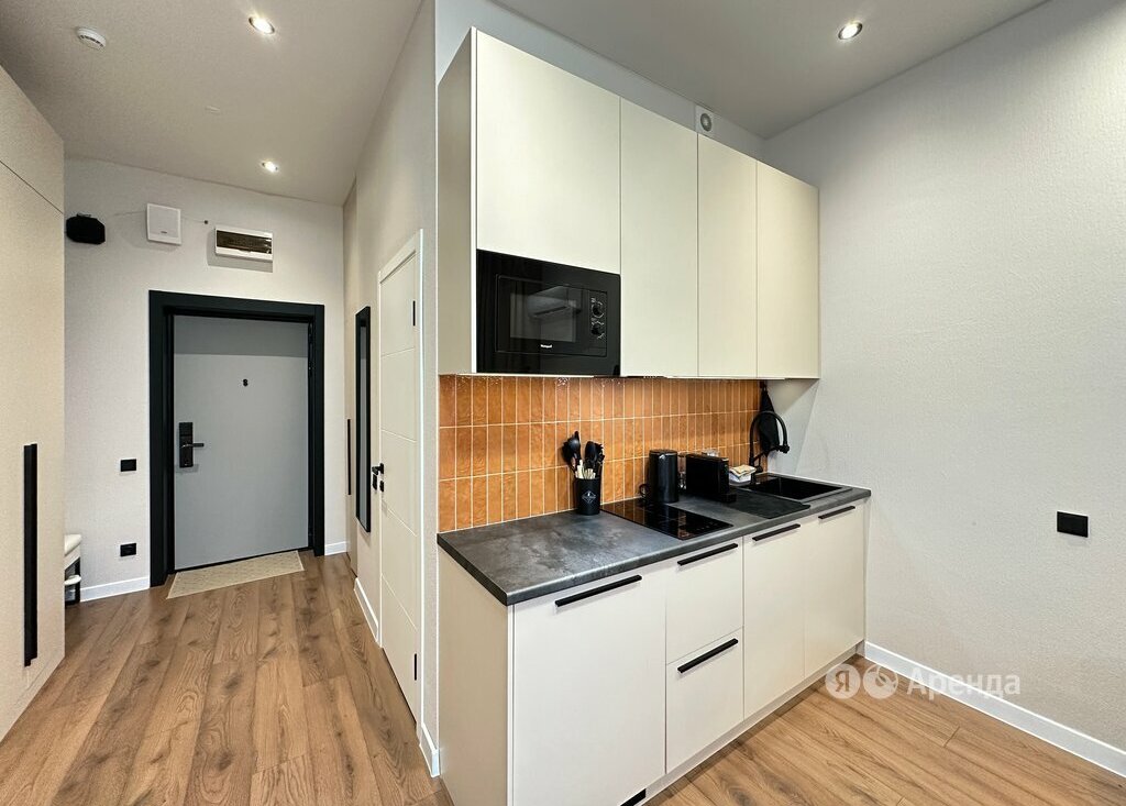 Сдаётся студия площадью 26 кв.м. с дизайнерским ремонтом на 24 этаже в 24-этажном доме на срок от 11 месяцев. Из техники есть: