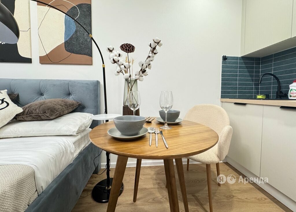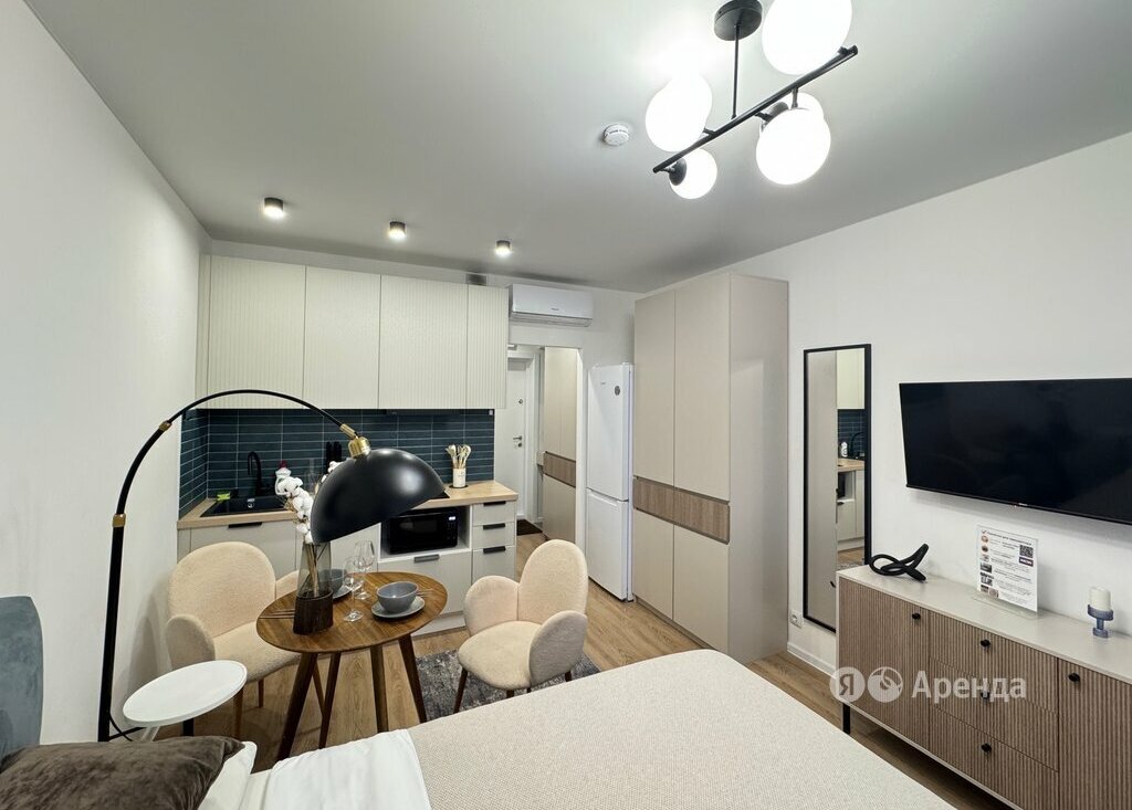 Сдаётся студия площадью 20 кв.м. с евроремонтом на 19 этаже в 33-этажном доме на срок от 11 месяцев. Из техники есть: