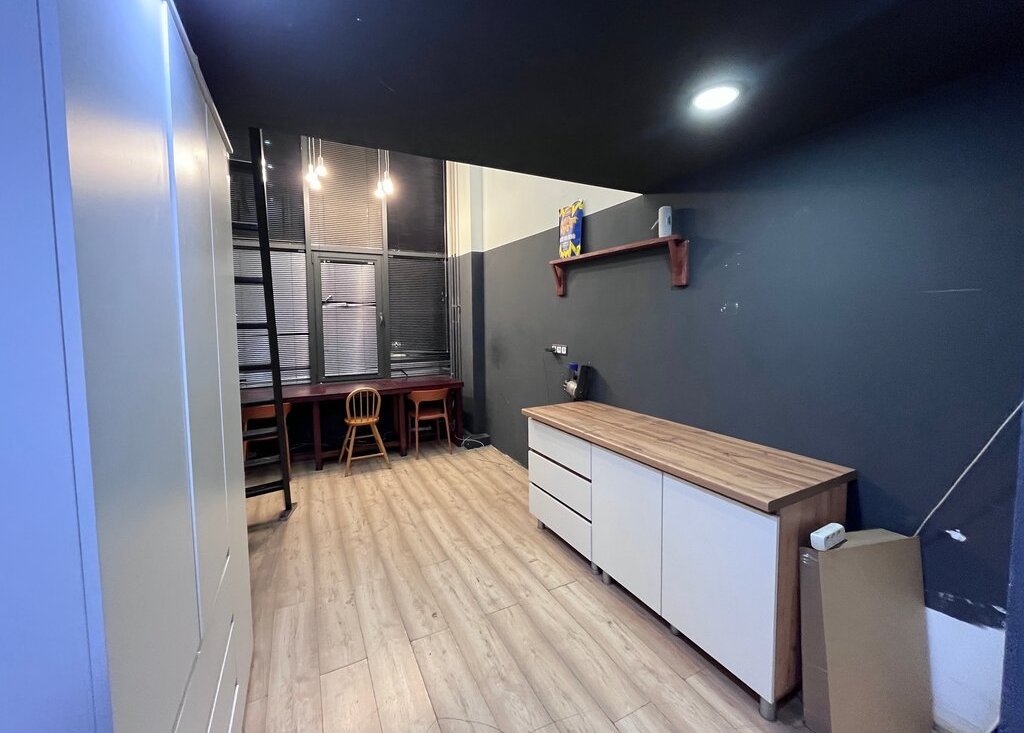 Сдаётся уютная студия в апартаментах площадью 18.5 кв. м, расположенная на первом этаже четырёхэтажного дома. Высокие потолки (6 метров) создают ощущение простора, а окна, выходящие во двор, обеспечивают тишину и приватность. Жилая площадь составляет 15.5 кв. м, а компактная кухня имеет площадь 3 кв. м.