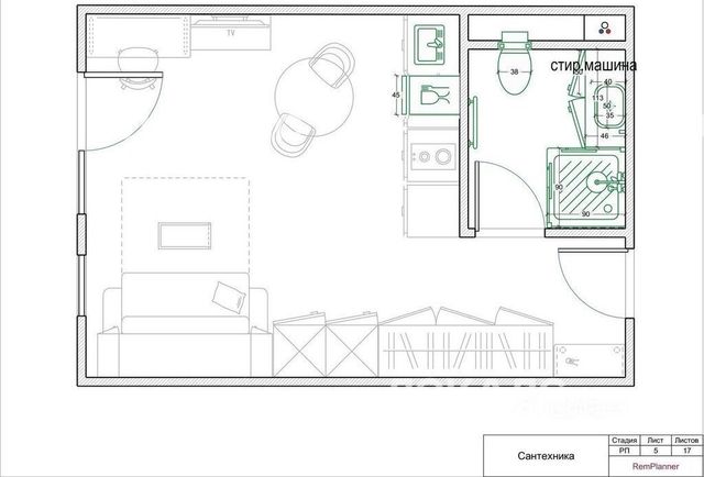 Студия обладает собственным неповторимым дизайном, ремонт выполнен в современном стиле.