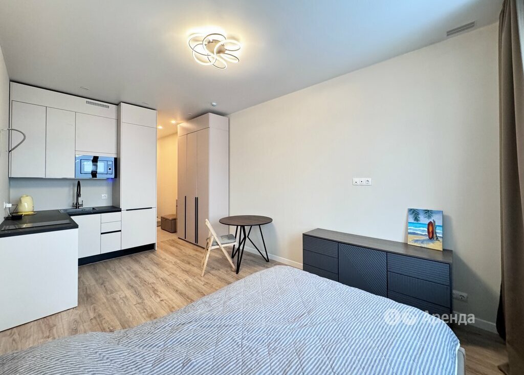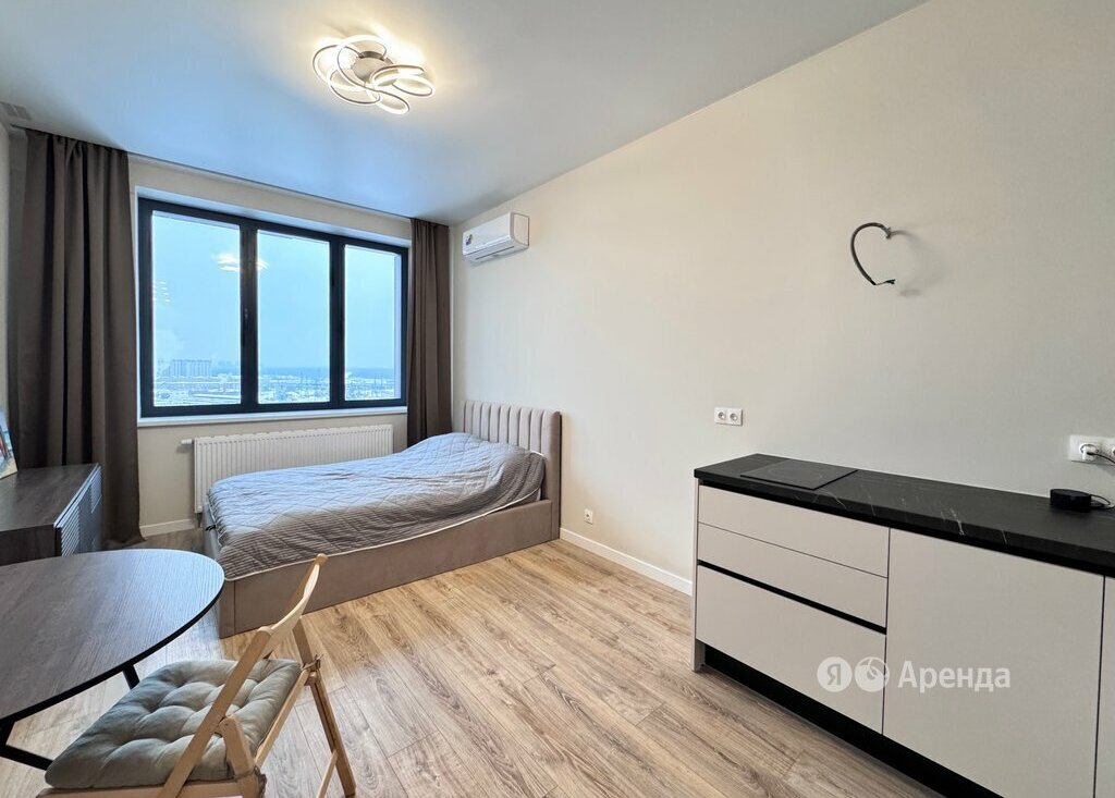 Сдаётся студия площадью 26 кв.м. с евроремонтом на 18 этаже в 53-этажном доме на срок от 11 месяцев. Из техники есть: