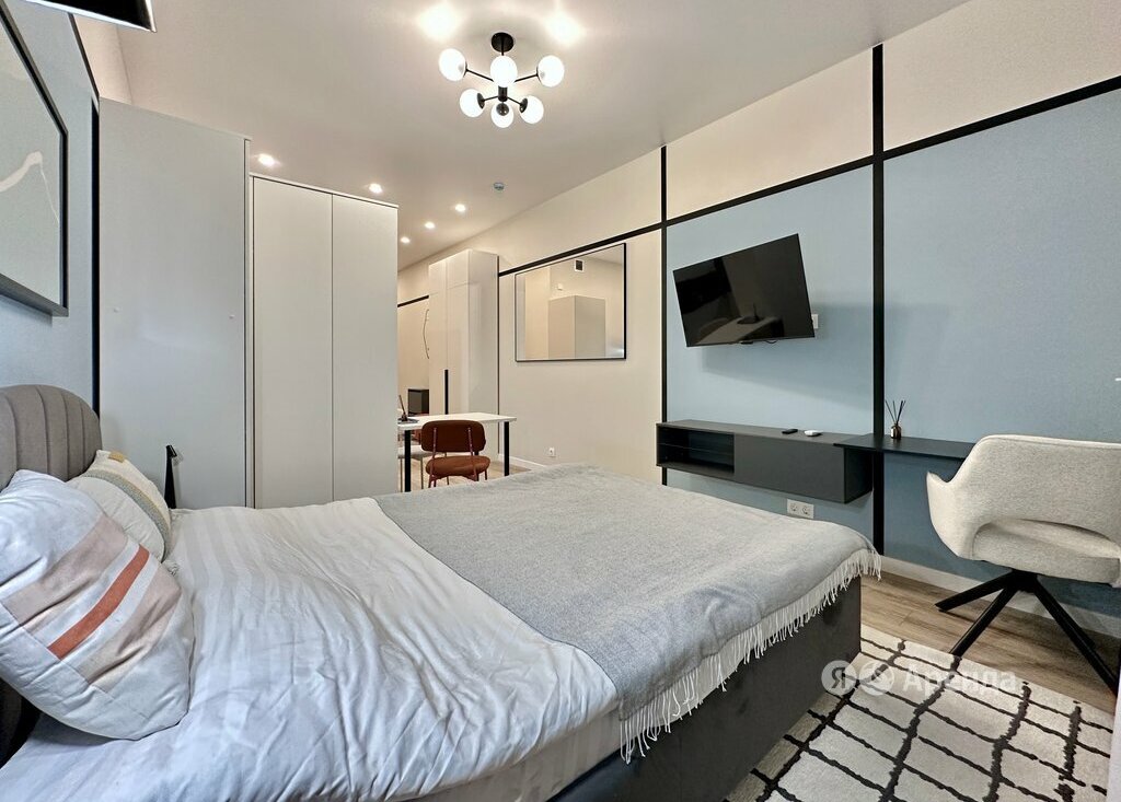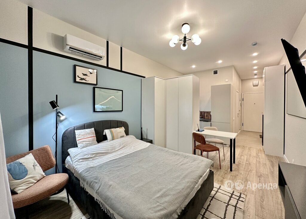Сдаётся студия площадью 26 кв.м. с дизайнерским ремонтом на 40 этаже в 53-этажном доме на срок от 11 месяцев. Из техники есть: