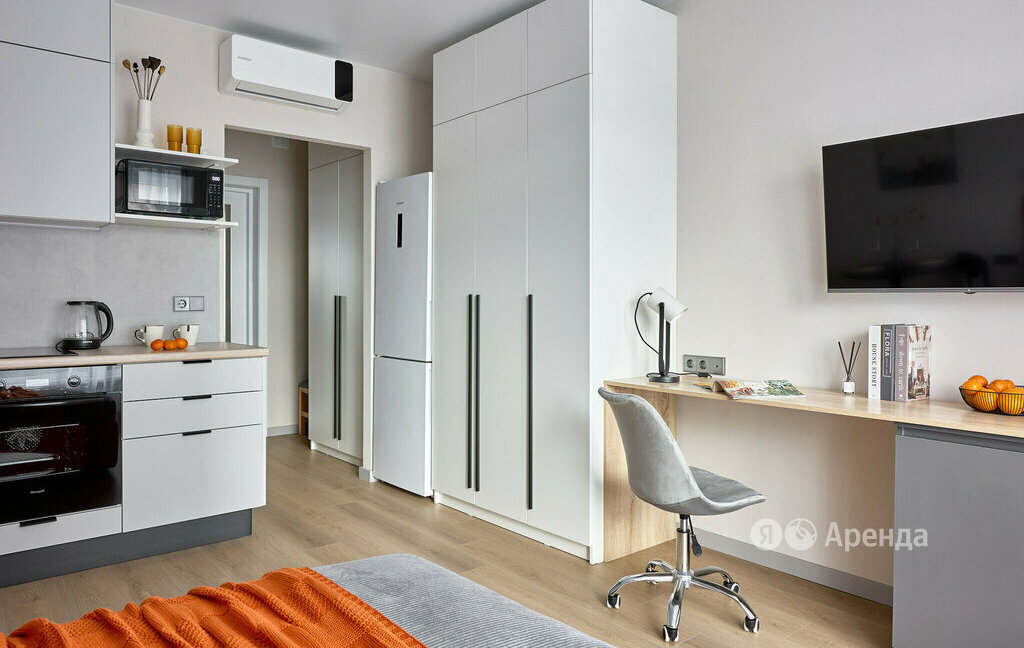 Сдаётся студия площадью 23 кв.м. с дизайнерским ремонтом на 16 этаже в 33-этажном доме на срок от 11 месяцев. Из техники есть:
