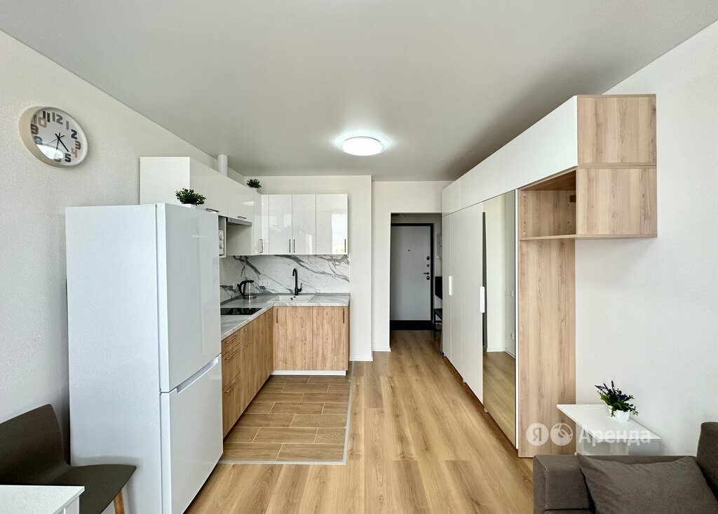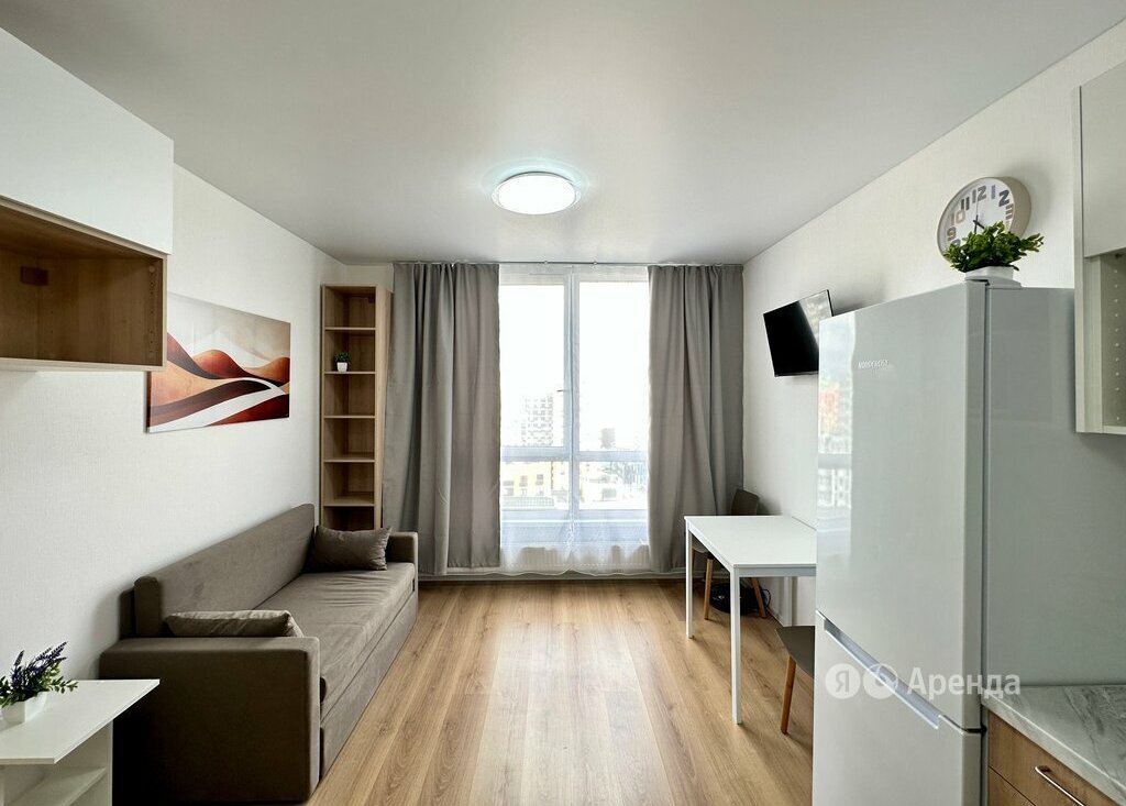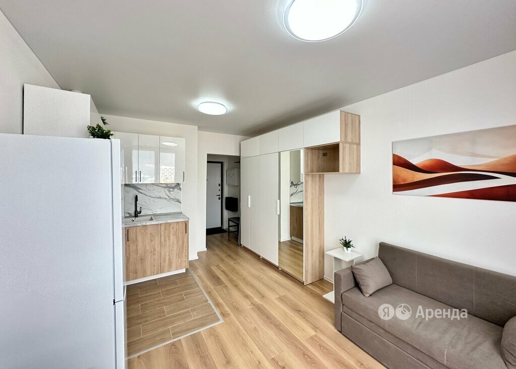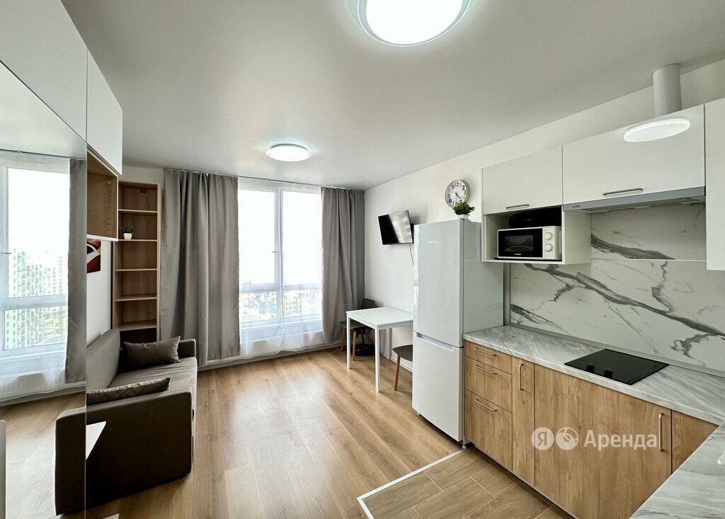 Сдаётся студия площадью 21 кв.м. с евроремонтом на 18 этаже в 22-этажном доме на срок от 11 месяцев. Из техники есть: