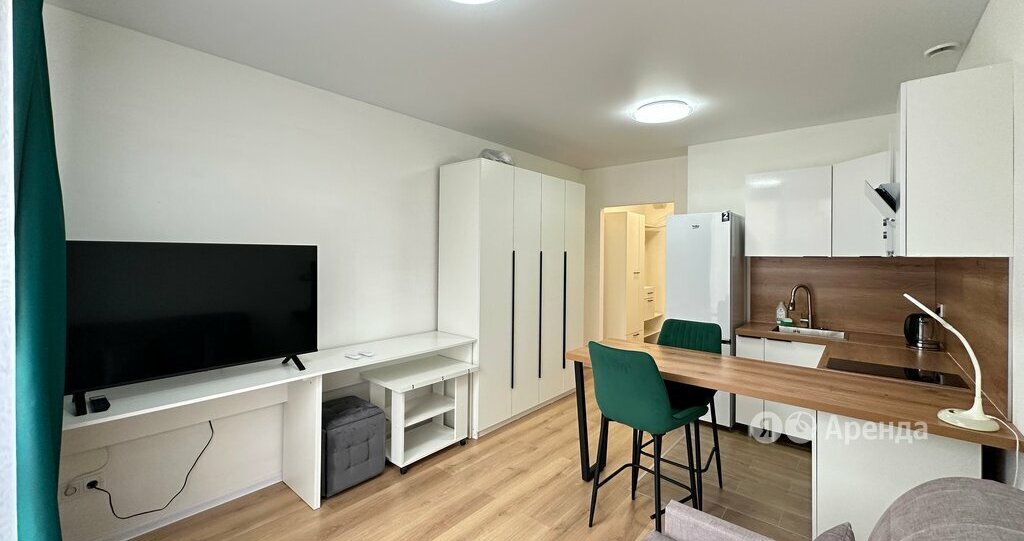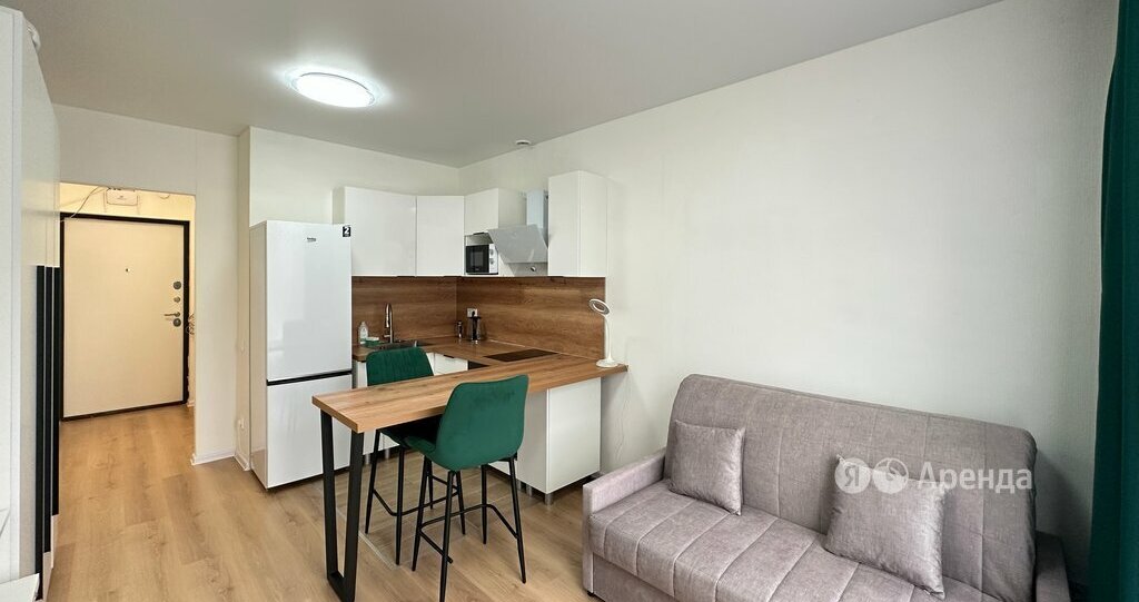 Сдаётся студия площадью 23 кв.м. с евроремонтом на 2 этаже в 24-этажном доме на срок от 11 месяцев. Из техники есть: