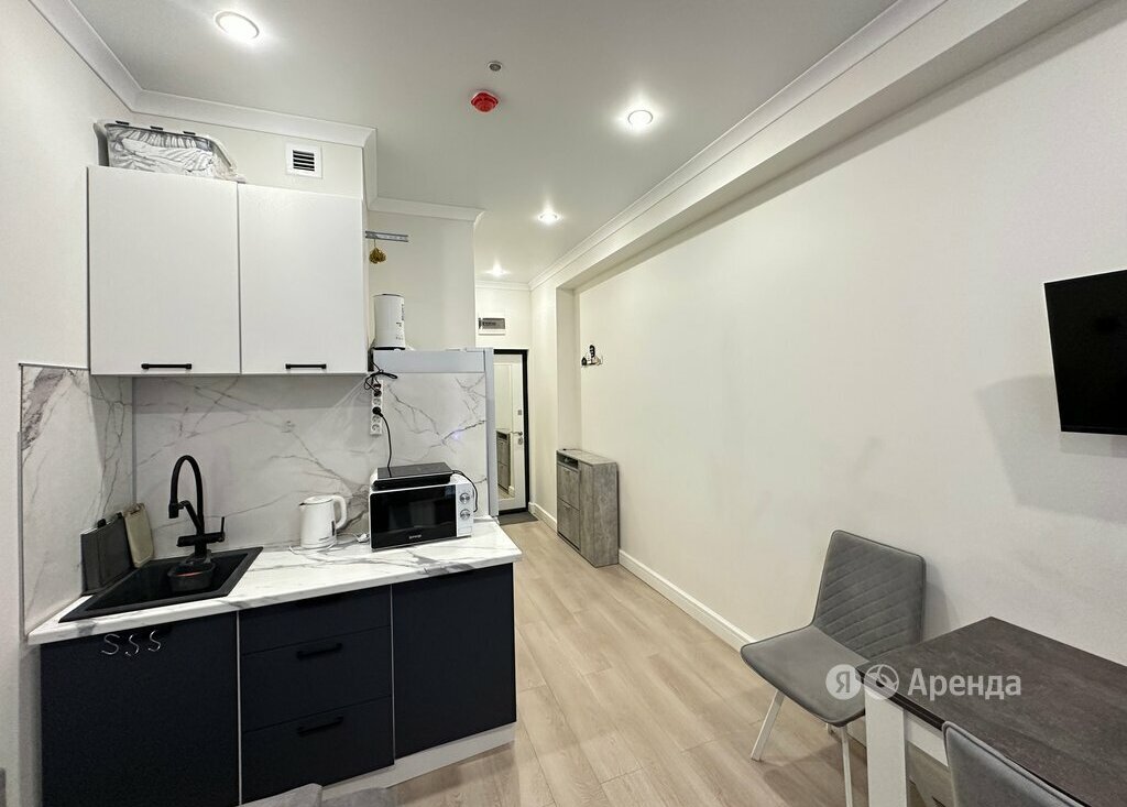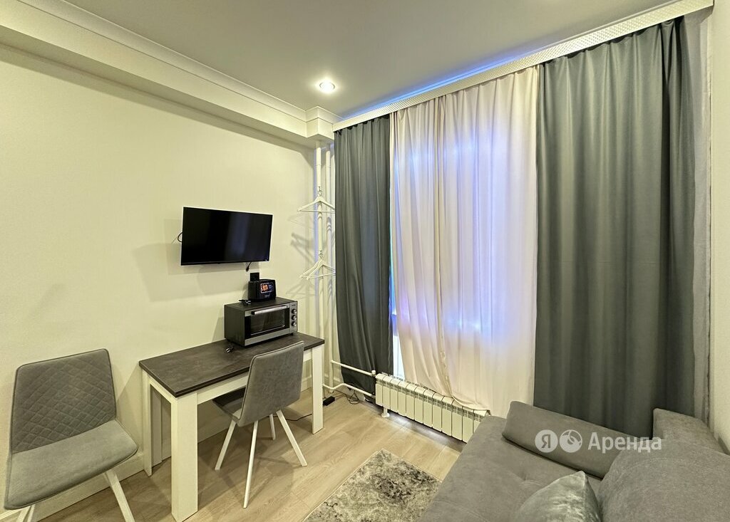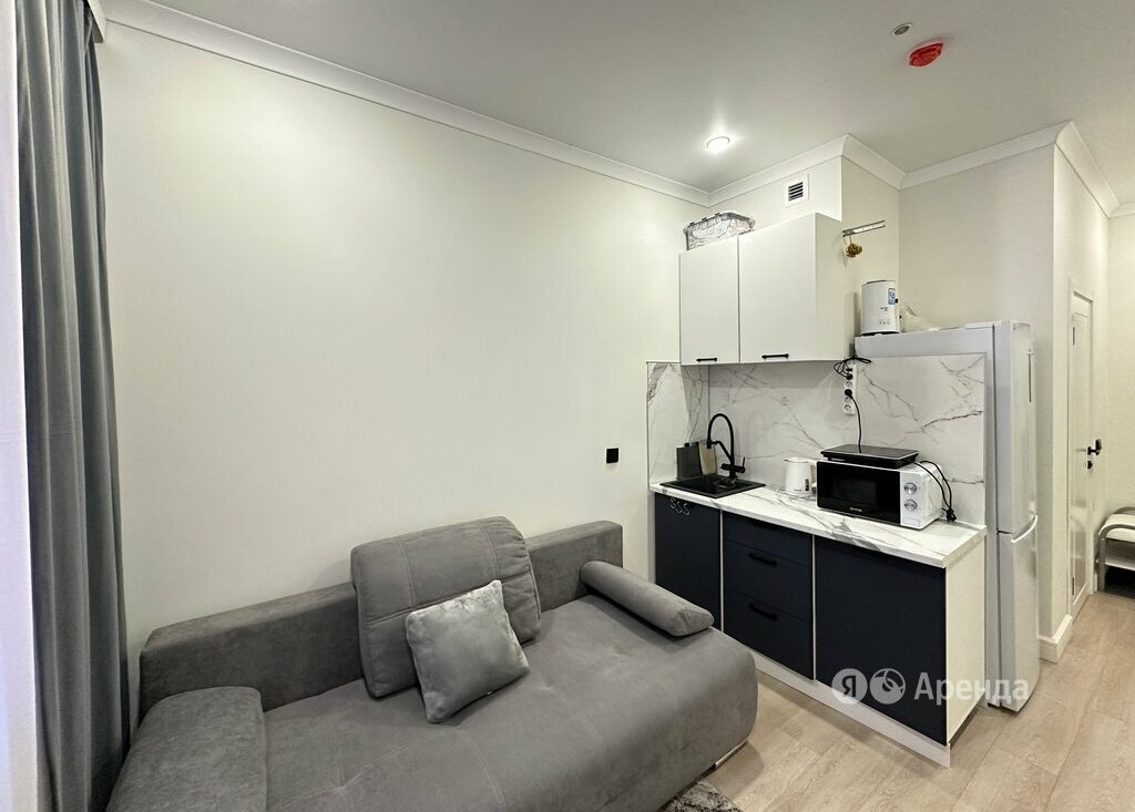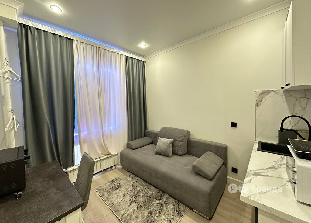 Сдаётся студия площадью 16 кв.м. с евроремонтом на 1 этаже в 9-этажном доме на срок от 11 месяцев. Из техники есть: